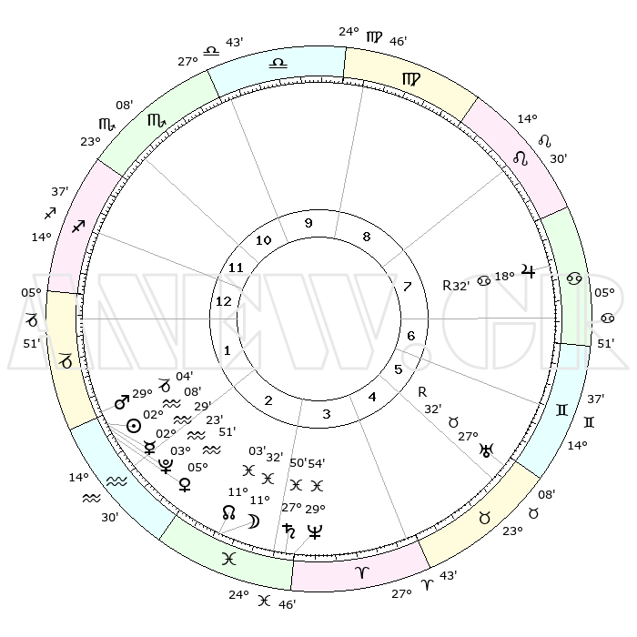 | | ΘΕΣΕΙΣ ΠΛΑΝΗΤΩΝ ΑΣΤΡΟΛΟΓΙΚΟΥ ΧΑΡΤΗ ΤΗΣ ΣΤΙΓΜΗΣ ΑΥΤΗΣ | | | | Πλανήτης | Ζώδιο | Μοίρες | Δεκαήμ. | Σε οίκο | Απόκλιση | | Ακμές των οίκων | | Ηλιος | Υδροχόος | 02°00' | Πρώτο | 3 | 19 S 43 | | 1ος | 25°16' | Σκορπιός | | Σελήνη | Ιχθείς | 09°49' | Πρώτο | 4 | 07 S 51 | | 2ος | 25°47' | Τοξότης | | Ερμής | Υδροχόος | 02°16' | Πρώτο | 3 | 21 S 39 | | 3ος | 00°44' | Υδροχόος | | Αφροδίτη | Υδροχόος | 05°41' | Πρώτο | 3 | 19 S 59 | | 4ος | 06°37' | Ιχθείς | | Αρης | Αιγόκερως | 28°57' | Τρίτο | 2 | 21 S 21 | | 5ος | 08°11' | Κριός | | Δίας | Καρκίνος | 18°33'R | Δεύτερο | 8 | 22 N 26 | | 6ος | 03°53' | Ταύρος | | Κρόνος | Ιχθείς | 27°50' | Τρίτο | 4 | 02 S 53 | | 7ος | 25°16' | Ταύρος | | Ουρανός | Ταύρος | 27°32'R | Τρίτο | 7 | 19 N 25 | | 8ος | 25°47' | Δίδυμοι | | Ποσειδώνας | Ιχθείς | 29°53' | Τρίτο | 4 | 01 S 15 | | 9ος | 00°44' | Λέων | | Πλούτωνας | Υδροχόος | 03°23' | Πρώτο | 3 | 23 S 05 | | 10ος | 06°37' | Παρθένος | | Β. Δεσμός | Ιχθείς | 11°03' | Δεύτερο | 4 | 07 S 25 | | 11ος | 08°11' | Ζυγός | | Ωροσκόπος | Σκορπιός | 25°16' | Τρίτο | | | 12ος | 03°53' | Σκορπιός | | Μεσουράνημα | Παρθένος | 06°37' | Πρώτο | | | |
