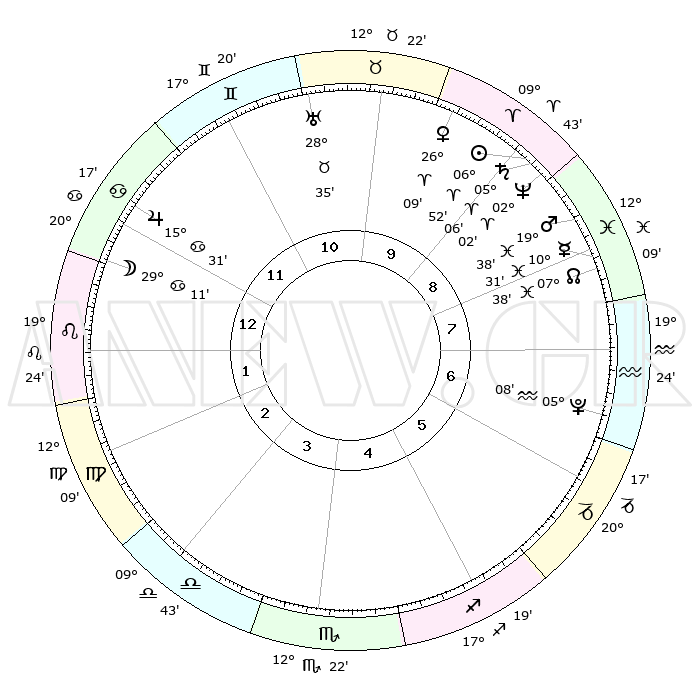 | | ΘΕΣΕΙΣ ΠΛΑΝΗΤΩΝ ΑΣΤΡΟΛΟΓΙΚΟΥ ΧΑΡΤΗ ΤΗΣ ΣΤΙΓΜΗΣ ΑΥΤΗΣ | | | | Πλανήτης | Ζώδιο | Μοίρες | Δεκαήμ. | Σε οίκο | Απόκλιση | | Ακμές των οίκων | | Ηλιος | Κριός | 06°49' | Πρώτο | 9 | 02 N 42 | | 1ος | 04°31' | Λέων | | Σελήνη | Καρκίνος | 28°29' | Τρίτο | 12 | 23 N 46 | | 2ος | 25°53' | Λέων | | Ερμής | Ιχθείς | 10°29' | Δεύτερο | 8 | 08 S 06 | | 3ος | 21°33' | Παρθένος | | Αφροδίτη | Κριός | 26°05' | Τρίτο | 10 | 09 N 29 | | 4ος | 23°06' | Ζυγός | | Αρης | Ιχθείς | 19°35' | Δεύτερο | 8 | 05 S 06 | | 5ος | 28°60' | Σκορπιός | | Δίας | Καρκίνος | 15°31' | Δεύτερο | 12 | 22 N 54 | | 6ος | 03°58' | Αιγόκερως | | Κρόνος | Κριός | 05°06' | Πρώτο | 9 | 00 N 04 | | 7ος | 04°31' | Υδροχόος | | Ουρανός | Ταύρος | 28°34' | Τρίτο | 10 | 19 N 40 | | 8ος | 25°53' | Υδροχόος | | Ποσειδώνας | Κριός | 02°02' | Πρώτο | 9 | 00 S 23 | | 9ος | 21°33' | Ιχθείς | | Πλούτωνας | Υδροχόος | 05°08' | Πρώτο | 7 | 22 S 48 | | 10ος | 23°06' | Κριός | | Β. Δεσμός | Ιχθείς | 07°39' | Πρώτο | 8 | 08 S 42 | | 11ος | 28°60' | Ταύρος | | Ωροσκόπος | Λέων | 04°31' | Πρώτο | | | 12ος | 03°58' | Καρκίνος | | Μεσουράνημα | Κριός | 23°06' | Τρίτο | | | |