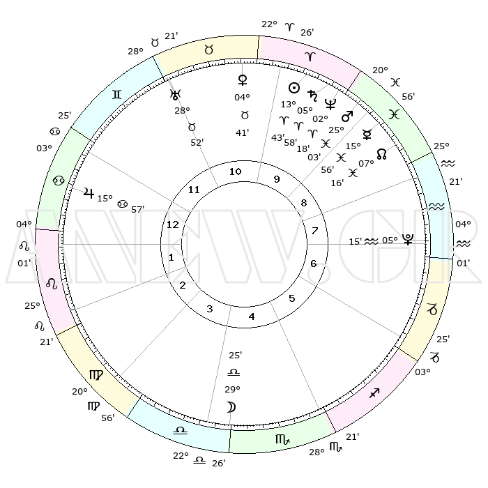 | | ΘΕΣΕΙΣ ΠΛΑΝΗΤΩΝ ΑΣΤΡΟΛΟΓΙΚΟΥ ΧΑΡΤΗ ΤΗΣ ΣΤΙΓΜΗΣ ΑΥΤΗΣ | | | | Πλανήτης | Ζώδιο | Μοίρες | Δεκαήμ. | Σε οίκο | Απόκλιση | | Ακμές των οίκων | | Ηλιος | Κριός | 13°39' | Δεύτερο | 10 | 05 N 23 | | 1ος | 14°26' | Καρκίνος | | Σελήνη | Ζυγός | 28°36' | Τρίτο | 4 | 14 S 41 | | 2ος | 04°52' | Λέων | | Ερμής | Ιχθείς | 15°52' | Δεύτερο | 9 | 07 S 06 | | 3ος | 27°57' | Λέων | | Αφροδίτη | Ταύρος | 04°36' | Πρώτο | 11 | 12 N 44 | | 4ος | 26°40' | Παρθένος | | Αρης | Ιχθείς | 24°60' | Τρίτο | 9 | 02 S 56 | | 5ος | 02°20' | Σκορπιός | | Δίας | Καρκίνος | 15°57' | Δεύτερο | 1 | 22 N 51 | | 6ος | 10°38' | Τοξότης | | Κρόνος | Κριός | 05°58' | Πρώτο | 10 | 00 N 25 | | 7ος | 14°26' | Αιγόκερως | | Ουρανός | Ταύρος | 28°52' | Τρίτο | 11 | 19 N 44 | | 8ος | 04°52' | Υδροχόος | | Ποσειδώνας | Κριός | 02°18' | Πρώτο | 10 | 00 S 17 | | 9ος | 27°57' | Υδροχόος | | Πλούτωνας | Υδροχόος | 05°15' | Πρώτο | 8 | 22 S 47 | | 10ος | 26°40' | Ιχθείς | | Β. Δεσμός | Ιχθείς | 07°17' | Πρώτο | 9 | 08 S 50 | | 11ος | 02°20' | Ταύρος | | Ωροσκόπος | Καρκίνος | 14°26' | Δεύτερο | | | 12ος | 10°38' | Δίδυμοι | | Μεσουράνημα | Ιχθείς | 26°40' | Τρίτο | | | |