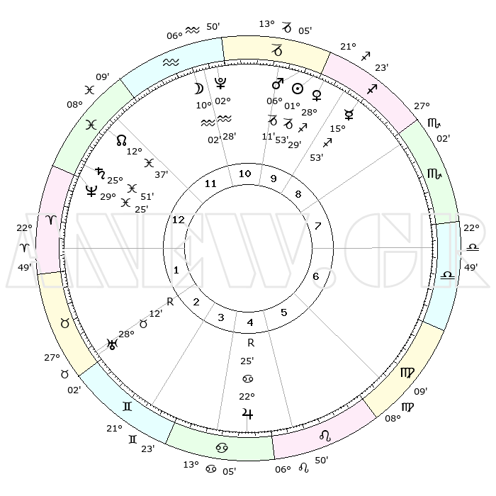 | | ΘΕΣΕΙΣ ΠΛΑΝΗΤΩΝ ΑΣΤΡΟΛΟΓΙΚΟΥ ΧΑΡΤΗ ΤΗΣ ΣΤΙΓΜΗΣ ΑΥΤΗΣ | | | | Πλανήτης | Ζώδιο | Μοίρες | Δεκαήμ. | Σε οίκο | Απόκλιση | | Ακμές των οίκων | | Ηλιος | Αιγόκερως | 01°48' | Πρώτο | 10 | 23 S 25 | | 1ος | 12°02' | Ιχθείς | | Σελήνη | Υδροχόος | 09°09' | Πρώτο | 12 | 20 S 33 | | 2ος | 26°00' | Κριός | | Ερμής | Τοξότης | 15°47' | Δεύτερο | 9 | 22 S 13 | | 3ος | 26°26' | Ταύρος | | Αφροδίτη | Τοξότης | 28°23' | Τρίτο | 10 | 23 S 36 | | 4ος | 19°47' | Δίδυμοι | | Αρης | Αιγόκερως | 06°08' | Πρώτο | 10 | 24 S 07 | | 5ος | 11°33' | Καρκίνος | | Δίας | Καρκίνος | 22°26'R | Τρίτο | 5 | 21 N 47 | | 6ος | 06°28' | Λέων | | Κρόνος | Ιχθείς | 25°51' | Τρίτο | 1 | 03 S 45 | | 7ος | 12°02' | Παρθένος | | Ουρανός | Ταύρος | 28°12'R | Τρίτο | 3 | 19 N 34 | | 8ος | 26°00' | Ζυγός | | Ποσειδώνας | Ιχθείς | 29°25' | Τρίτο | 1 | 01 S 27 | | 9ος | 26°26' | Σκορπιός | | Πλούτωνας | Υδροχόος | 02°28' | Πρώτο | 11 | 23 S 16 | | 10ος | 19°47' | Τοξότης | | Β. Δεσμός | Ιχθείς | 12°38' | Δεύτερο | 1 | 06 S 49 | | 11ος | 11°33' | Αιγόκερως | | Ωροσκόπος | Ιχθείς | 12°02' | Δεύτερο | | | 12ος | 06°28' | Υδροχόος | | Μεσουράνημα | Τοξότης | 19°47' | Δεύτερο | | | |