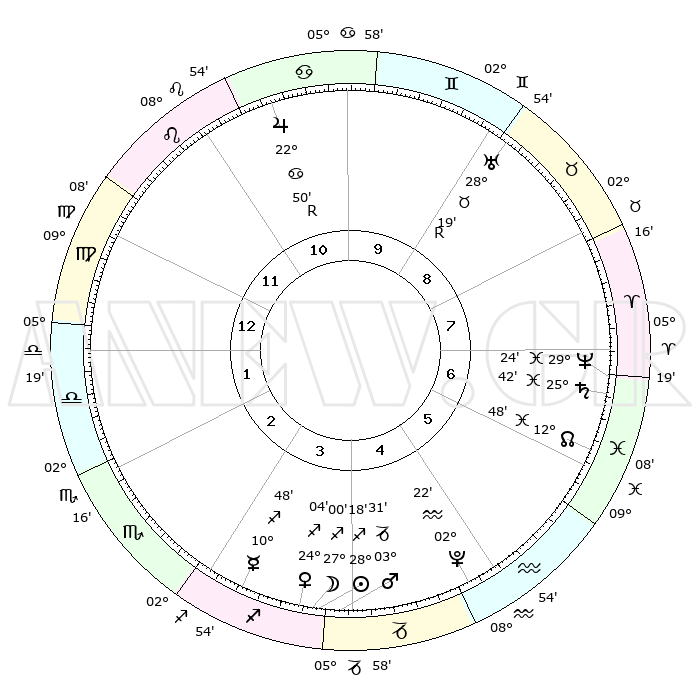| | ΘΕΣΕΙΣ ΠΛΑΝΗΤΩΝ ΑΣΤΡΟΛΟΓΙΚΟΥ ΧΑΡΤΗ ΤΗΣ ΣΤΙΓΜΗΣ ΑΥΤΗΣ | | | | Πλανήτης | Ζώδιο | Μοίρες | Δεκαήμ. | Σε οίκο | Απόκλιση | | Ακμές των οίκων | | Ηλιος | Τοξότης | 28°14' | Τρίτο | 4 | 23 S 25 | | 1ος | 15°40' | Παρθένος | | Σελήνη | Τοξότης | 26°12' | Τρίτο | 4 | 28 S 14 | | 2ος | 11°04' | Ζυγός | | Ερμής | Τοξότης | 10°42' | Δεύτερο | 3 | 21 S 09 | | 3ος | 10°52' | Σκορπιός | | Αφροδίτη | Τοξότης | 23°59' | Τρίτο | 4 | 23 S 20 | | 4ος | 13°48' | Τοξότης | | Αρης | Αιγόκερως | 03°28' | Πρώτο | 4 | 24 S 12 | | 5ος | 17°08' | Αιγόκερως | | Δίας | Καρκίνος | 22°50'R | Τρίτο | 11 | 21 N 42 | | 6ος | 18°09' | Υδροχόος | | Κρόνος | Ιχθείς | 25°42' | Τρίτο | 7 | 03 S 49 | | 7ος | 15°40' | Ιχθείς | | Ουρανός | Ταύρος | 28°19'R | Τρίτο | 9 | 19 N 35 | | 8ος | 11°04' | Κριός | | Ποσειδώνας | Ιχθείς | 29°24' | Τρίτο | 7 | 01 S 28 | | 9ος | 10°52' | Ταύρος | | Πλούτωνας | Υδροχόος | 02°22' | Πρώτο | 5 | 23 S 18 | | 10ος | 13°48' | Δίδυμοι | | Β. Δεσμός | Ιχθείς | 12°49' | Δεύτερο | 6 | 06 S 45 | | 11ος | 17°08' | Καρκίνος | | Ωροσκόπος | Παρθένος | 15°40' | Δεύτερο | | | 12ος | 18°09' | Λέων | | Μεσουράνημα | Δίδυμοι | 13°48' | Δεύτερο | | | |
