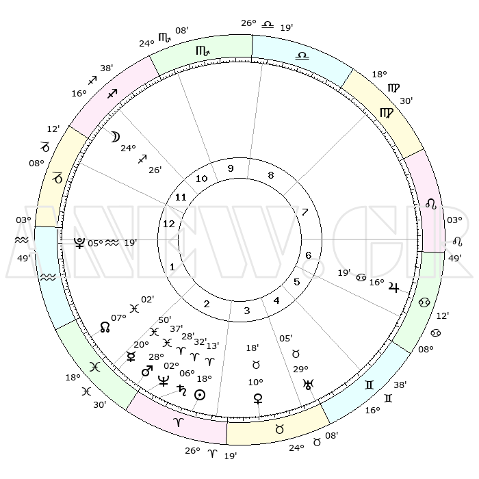 | | ΘΕΣΕΙΣ ΠΛΑΝΗΤΩΝ ΑΣΤΡΟΛΟΓΙΚΟΥ ΧΑΡΤΗ ΤΗΣ ΣΤΙΓΜΗΣ ΑΥΤΗΣ | | | | Πλανήτης | Ζώδιο | Μοίρες | Δεκαήμ. | Σε οίκο | Απόκλιση | | Ακμές των οίκων | | Ηλιος | Κριός | 18°09' | Δεύτερο | 3 | 07 N 07 | | 1ος | 08°43' | Αιγόκερως | | Σελήνη | Τοξότης | 23°40' | Τρίτο | 12 | 28 S 15 | | 2ος | 18°06' | Υδροχόος | | Ερμής | Ιχθείς | 20°46' | Τρίτο | 2 | 05 S 39 | | 3ος | 28°24' | Ιχθείς | | Αφροδίτη | Ταύρος | 10°13' | Δεύτερο | 4 | 14 N 44 | | 4ος | 00°49' | Ταύρος | | Αρης | Ιχθείς | 28°34' | Τρίτο | 3 | 01 S 30 | | 5ος | 25°50' | Ταύρος | | Δίας | Καρκίνος | 16°18' | Δεύτερο | 7 | 22 N 49 | | 6ος | 17°13' | Δίδυμοι | | Κρόνος | Κριός | 06°32' | Πρώτο | 3 | 00 N 38 | | 7ος | 08°43' | Καρκίνος | | Ουρανός | Ταύρος | 29°05' | Τρίτο | 5 | 19 N 47 | | 8ος | 18°06' | Λέων | | Ποσειδώνας | Κριός | 02°28' | Πρώτο | 3 | 00 S 13 | | 9ος | 28°24' | Παρθένος | | Πλούτωνας | Υδροχόος | 05°19' | Πρώτο | 1 | 22 S 47 | | 10ος | 00°49' | Σκορπιός | | Β. Δεσμός | Ιχθείς | 07°02' | Πρώτο | 2 | 08 S 56 | | 11ος | 25°50' | Σκορπιός | | Ωροσκόπος | Αιγόκερως | 08°43' | Πρώτο | | | 12ος | 17°13' | Τοξότης | | Μεσουράνημα | Σκορπιός | 00°49' | Πρώτο | | | |