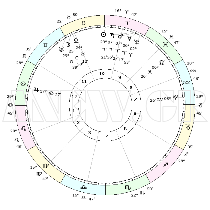 | | ΘΕΣΕΙΣ ΠΛΑΝΗΤΩΝ ΑΣΤΡΟΛΟΓΙΚΟΥ ΧΑΡΤΗ ΤΗΣ ΣΤΙΓΜΗΣ ΑΥΤΗΣ | | | | Πλανήτης | Ζώδιο | Μοίρες | Δεκαήμ. | Σε οίκο | Απόκλιση | | Ακμές των οίκων | | Ηλιος | Κριός | 29°16' | Τρίτο | 11 | 11 N 13 | | 1ος | 05°05' | Καρκίνος | | Σελήνη | Ταύρος | 24°37' | Τρίτο | 11 | 23 N 44 | | 2ος | 25°38' | Καρκίνος | | Ερμής | Κριός | 06°09' | Πρώτο | 10 | 00 N 02 | | 3ος | 17°48' | Λέων | | Αφροδίτη | Ταύρος | 24°06' | Τρίτο | 11 | 19 N 09 | | 4ος | 14°57' | Παρθένος | | Αρης | Κριός | 07°23' | Πρώτο | 10 | 02 N 03 | | 5ος | 19°38' | Ζυγός | | Δίας | Καρκίνος | 17°26' | Δεύτερο | 1 | 22 N 41 | | 6ος | 29°11' | Σκορπιός | | Κρόνος | Κριός | 07°54' | Πρώτο | 10 | 01 N 09 | | 7ος | 05°04' | Αιγόκερως | | Ουρανός | Ταύρος | 29°39' | Τρίτο | 12 | 19 N 54 | | 8ος | 25°38' | Αιγόκερως | | Ποσειδώνας | Κριός | 02°53' | Πρώτο | 10 | 00 S 04 | | 9ος | 17°48' | Υδροχόος | | Πλούτωνας | Υδροχόος | 05°26' | Πρώτο | 8 | 22 S 48 | | 10ος | 14°57' | Ιχθείς | | Β. Δεσμός | Ιχθείς | 06°26' | Πρώτο | 9 | 09 S 09 | | 11ος | 19°38' | Κριός | | Ωροσκόπος | Καρκίνος | 05°05' | Πρώτο | | | 12ος | 29°11' | Ταύρος | | Μεσουράνημα | Ιχθείς | 14°57' | Δεύτερο | | | |