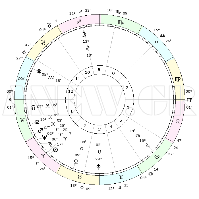 | | ΘΕΣΕΙΣ ΠΛΑΝΗΤΩΝ ΑΣΤΡΟΛΟΓΙΚΟΥ ΧΑΡΤΗ ΤΗΣ ΣΤΙΓΜΗΣ ΑΥΤΗΣ | | | | Πλανήτης | Ζώδιο | Μοίρες | Δεκαήμ. | Σε οίκο | Απόκλιση | | Ακμές των οίκων | | Ηλιος | Κριός | 17°13' | Δεύτερο | 2 | 06 N 46 | | 1ος | 27°35' | Αιγόκερως | | Σελήνη | Τοξότης | 12°25' | Δεύτερο | 11 | 27 S 23 | | 2ος | 11°16' | Ιχθείς | | Ερμής | Ιχθείς | 19°41' | Δεύτερο | 2 | 06 S 00 | | 3ος | 20°05' | Κριός | | Αφροδίτη | Ταύρος | 09°03' | Πρώτο | 3 | 14 N 20 | | 4ος | 18°58' | Ταύρος | | Αρης | Ιχθείς | 27°50' | Τρίτο | 2 | 01 S 48 | | 5ος | 11°55' | Δίδυμοι | | Δίας | Καρκίνος | 16°13' | Δεύτερο | 6 | 22 N 49 | | 6ος | 03°15' | Καρκίνος | | Κρόνος | Κριός | 06°24' | Πρώτο | 2 | 00 N 35 | | 7ος | 27°35' | Καρκίνος | | Ουρανός | Ταύρος | 29°02' | Τρίτο | 4 | 19 N 46 | | 8ος | 11°17' | Παρθένος | | Ποσειδώνας | Κριός | 02°26' | Πρώτο | 2 | 00 S 14 | | 9ος | 20°05' | Ζυγός | | Πλούτωνας | Υδροχόος | 05°18' | Πρώτο | 1 | 22 S 47 | | 10ος | 18°58' | Σκορπιός | | Β. Δεσμός | Ιχθείς | 07°05' | Πρώτο | 1 | 08 S 54 | | 11ος | 11°55' | Τοξότης | | Ωροσκόπος | Αιγόκερως | 27°35' | Τρίτο | | | 12ος | 03°15' | Αιγόκερως | | Μεσουράνημα | Σκορπιός | 18°58' | Δεύτερο | | | |