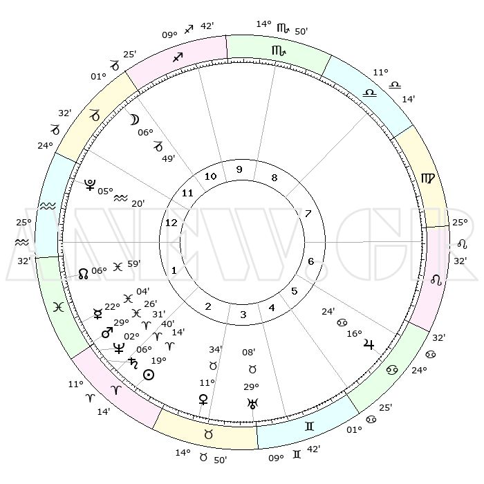 | | ΘΕΣΕΙΣ ΠΛΑΝΗΤΩΝ ΑΣΤΡΟΛΟΓΙΚΟΥ ΧΑΡΤΗ ΤΗΣ ΣΤΙΓΜΗΣ ΑΥΤΗΣ | | | | Πλανήτης | Ζώδιο | Μοίρες | Δεκαήμ. | Σε οίκο | Απόκλιση | | Ακμές των οίκων | | Ηλιος | Κριός | 19°10' | Δεύτερο | 3 | 07 N 30 | | 1ος | 23°35' | Αιγόκερως | | Σελήνη | Αιγόκερως | 05°59' | Πρώτο | 12 | 27 S 52 | | 2ος | 06°29' | Ιχθείς | | Ερμής | Ιχθείς | 21°59' | Τρίτο | 2 | 05 S 15 | | 3ος | 15°49' | Κριός | | Αφροδίτη | Ταύρος | 11°29' | Δεύτερο | 3 | 15 N 11 | | 4ος | 15°26' | Ταύρος | | Αρης | Ιχθείς | 29°23' | Τρίτο | 2 | 01 S 11 | | 5ος | 08°44' | Δίδυμοι | | Δίας | Καρκίνος | 16°24' | Δεύτερο | 6 | 22 N 48 | | 6ος | 29°59' | Δίδυμοι | | Κρόνος | Κριός | 06°39' | Πρώτο | 2 | 00 N 41 | | 7ος | 23°35' | Καρκίνος | | Ουρανός | Ταύρος | 29°08' | Τρίτο | 4 | 19 N 48 | | 8ος | 06°29' | Παρθένος | | Ποσειδώνας | Κριός | 02°30' | Πρώτο | 2 | 00 S 12 | | 9ος | 15°49' | Ζυγός | | Πλούτωνας | Υδροχόος | 05°20' | Πρώτο | 1 | 22 S 47 | | 10ος | 15°26' | Σκορπιός | | Β. Δεσμός | Ιχθείς | 06°59' | Πρώτο | 2 | 08 S 57 | | 11ος | 08°44' | Τοξότης | | Ωροσκόπος | Αιγόκερως | 23°35' | Τρίτο | | | 12ος | 29°59' | Τοξότης | | Μεσουράνημα | Σκορπιός | 15°26' | Δεύτερο | | | |