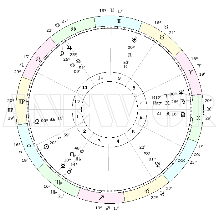 | ΘΕΣΕΙΣ ΠΛΑΝΗΤΩΝ ΑΣΤΡΟΛΟΓΙΚΟΥ ΧΑΡΤΗ ΤΗΣ ΣΤΙΓΜΗΣ ΑΥΤΗΣ | | Πλανήτης | Ζώδιο | Μοίρες | Δεκαήμ. | Σε οίκο | Απόκλιση | | Ακμές των οίκων | Ηλιος | Ζυγός | 20°53' | Τρίτο | 3 | 08 S 09 | | 1ος | 17°51' | Λέων | Σελήνη | Καρκίνος | 23°38' | Τρίτο | 12 | 25 N 32 | | 2ος | 10°26' | Παρθένος | Ερμής | Σκορπιός | 10°38' | Δεύτερο | 4 | 16 S 33 | | 3ος | 07°49' | Ζυγός | Αφροδίτη | Ζυγός | 00°07' | Πρώτο | 2 | 01 N 20 | | 4ος | 10°24' | Σκορπιός | Αρης | Σκορπιός | 14°48' | Δεύτερο | 4 | 16 S 29 | | 5ος | 15°28' | Τοξότης | Δίας | Καρκίνος | 23°50' | Τρίτο | 12 | 21 N 23 | | 6ος | 18°36' | Αιγόκερως | Κρόνος | Ιχθείς | 26°57'R | Τρίτο | 8 | 03 S 30 | | 7ος | 17°51' | Υδροχόος | Ουρανός | Δίδυμοι | 00°53'R | Πρώτο | 10 | 20 N 07 | | 8ος | 10°26' | Ιχθείς | Ποσειδώνας | Κριός | 00°12'R | Πρώτο | 8 | 01 S 11 | | 9ος | 07°49' | Κριός | Πλούτωνας | Υδροχόος | 01°22'R | Πρώτο | 6 | 23 S 32 | | 10ος | 10°24' | Ταύρος | Β. Δεσμός | Ιχθείς | 16°21' | Δεύτερο | 8 | 05 S 23 | | 11ος | 15°28' | Δίδυμοι | Ωροσκόπος | Λέων | 17°51' | Δεύτερο | | | 12ος | 18°36' | Καρκίνος | Μεσουράνημα | Ταύρος | 10°24' | Δεύτερο | | | |