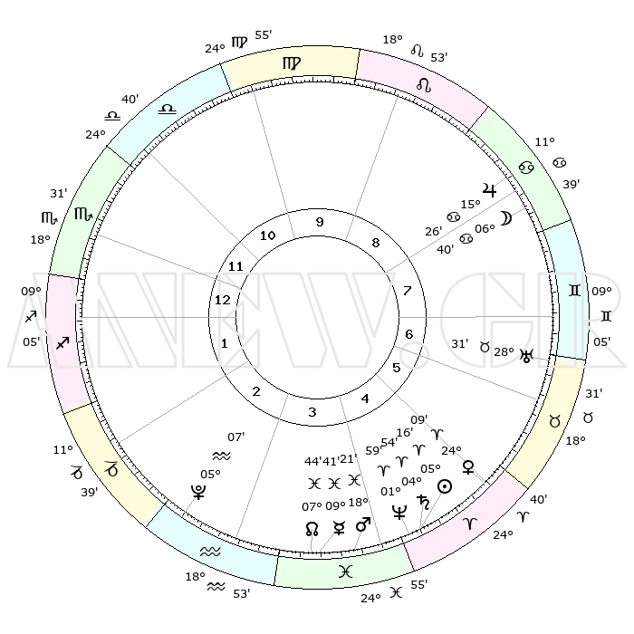 | | ΘΕΣΕΙΣ ΠΛΑΝΗΤΩΝ ΑΣΤΡΟΛΟΓΙΚΟΥ ΧΑΡΤΗ ΤΗΣ ΣΤΙΓΜΗΣ ΑΥΤΗΣ | | | | Πλανήτης | Ζώδιο | Μοίρες | Δεκαήμ. | Σε οίκο | Απόκλιση | | Ακμές των οίκων | | Ηλιος | Κριός | 05°12' | Πρώτο | 5 | 02 N 04 | | 1ος | 19°58' | Σκορπιός | | Σελήνη | Καρκίνος | 05°45' | Πρώτο | 8 | 27 N 58 | | 2ος | 19°54' | Τοξότης | | Ερμής | Ιχθείς | 09°39' | Πρώτο | 4 | 08 S 06 | | 3ος | 24°03' | Αιγόκερως | | Αφροδίτη | Κριός | 24°04' | Τρίτο | 5 | 08 N 42 | | 4ος | 29°40' | Υδροχόος | | Αρης | Ιχθείς | 18°18' | Δεύτερο | 4 | 05 S 36 | | 5ος | 01°44' | Κριός | | Δίας | Καρκίνος | 15°26' | Δεύτερο | 8 | 22 N 54 | | 6ος | 28°08' | Κριός | | Κρόνος | Κριός | 04°54' | Πρώτο | 5 | 00 S 00 | | 7ος | 19°58' | Ταύρος | | Ουρανός | Ταύρος | 28°30' | Τρίτο | 7 | 19 N 39 | | 8ος | 19°54' | Δίδυμοι | | Ποσειδώνας | Κριός | 01°59' | Πρώτο | 5 | 00 S 25 | | 9ος | 24°03' | Καρκίνος | | Πλούτωνας | Υδροχόος | 05°07' | Πρώτο | 3 | 22 S 48 | | 10ος | 29°40' | Λέων | | Β. Δεσμός | Ιχθείς | 07°44' | Πρώτο | 4 | 08 S 40 | | 11ος | 01°44' | Ζυγός | | Ωροσκόπος | Σκορπιός | 19°58' | Δεύτερο | | | 12ος | 28°08' | Ζυγός | | Μεσουράνημα | Λέων | 29°40' | Τρίτο | | | |