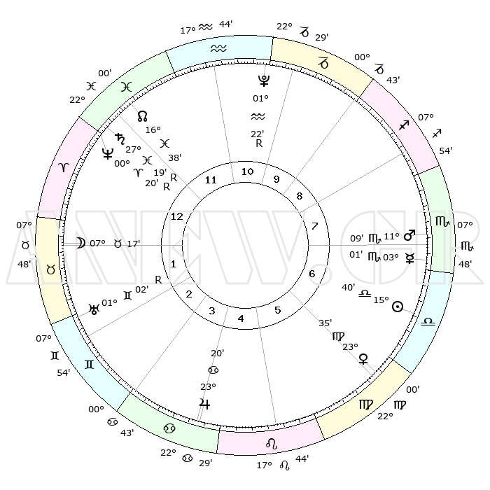 | ΘΕΣΕΙΣ ΠΛΑΝΗΤΩΝ ΑΣΤΡΟΛΟΓΙΚΟΥ ΧΑΡΤΗ ΤΗΣ ΣΤΙΓΜΗΣ ΑΥΤΗΣ | | Πλανήτης | Ζώδιο | Μοίρες | Δεκαήμ. | Σε οίκο | Απόκλιση | | Ακμές των οίκων | Ηλιος | Ζυγός | 15°34' | Δεύτερο | 7 | 06 S 08 | | 1ος | 10°32' | Ιχθείς | Σελήνη | Ταύρος | 05°46' | Πρώτο | 2 | 17 N 04 | | 2ος | 24°44' | Κριός | Ερμής | Σκορπιός | 02°52' | Πρώτο | 8 | 13 S 25 | | 3ος | 25°26' | Ταύρος | Αφροδίτη | Παρθένος | 23°28' | Τρίτο | 7 | 03 N 55 | | 4ος | 18°54' | Δίδυμοι | Αρης | Σκορπιός | 11°05' | Δεύτερο | 8 | 15 S 18 | | 5ος | 10°39' | Καρκίνος | Δίας | Καρκίνος | 23°19' | Τρίτο | 5 | 21 N 27 | | 6ος | 05°23' | Λέων | Κρόνος | Ιχθείς | 27°20'R | Τρίτο | 1 | 03 S 22 | | 7ος | 10°32' | Παρθένος | Ουρανός | Δίδυμοι | 01°02'R | Πρώτο | 3 | 20 N 09 | | 8ος | 24°44' | Ζυγός | Ποσειδώνας | Κριός | 00°21'R | Πρώτο | 1 | 01 S 08 | | 9ος | 25°26' | Σκορπιός | Πλούτωνας | Υδροχόος | 01°22'R | Πρώτο | 11 | 23 S 32 | | 10ος | 18°54' | Τοξότης | Β. Δεσμός | Ιχθείς | 16°38' | Δεύτερο | 1 | 05 S 16 | | 11ος | 10°39' | Αιγόκερως | Ωροσκόπος | Ιχθείς | 10°32' | Δεύτερο | | | 12ος | 05°23' | Υδροχόος | Μεσουράνημα | Τοξότης | 18°54' | Δεύτερο | | | |
