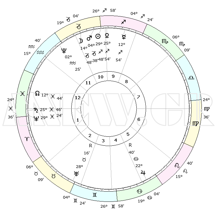| | ΘΕΣΕΙΣ ΠΛΑΝΗΤΩΝ ΑΣΤΡΟΛΟΓΙΚΟΥ ΧΑΡΤΗ ΤΗΣ ΣΤΙΓΜΗΣ ΑΥΤΗΣ | | | | Πλανήτης | Ζώδιο | Μοίρες | Δεκαήμ. | Σε οίκο | Απόκλιση | | Ακμές των οίκων | | Ηλιος | Τοξότης | 29°43' | Τρίτο | 11 | 23 S 26 | | 1ος | 12°30' | Υδροχόος | | Σελήνη | Αιγόκερως | 13°51' | Δεύτερο | 11 | 26 S 56 | | 2ος | 28°04' | Ιχθείς | | Ερμής | Τοξότης | 12°47' | Δεύτερο | 10 | 21 S 37 | | 3ος | 04°16' | Ταύρος | | Αφροδίτη | Τοξότης | 25°49' | Τρίτο | 11 | 23 S 27 | | 4ος | 00°46' | Δίδυμοι | | Αρης | Αιγόκερως | 04°34' | Πρώτο | 11 | 24 S 10 | | 5ος | 22°50' | Δίδυμοι | | Δίας | Καρκίνος | 22°40'R | Τρίτο | 6 | 21 N 44 | | 6ος | 14°54' | Καρκίνος | | Κρόνος | Ιχθείς | 25°45' | Τρίτο | 1 | 03 S 48 | | 7ος | 12°30' | Λέων | | Ουρανός | Ταύρος | 28°16'R | Τρίτο | 3 | 19 N 34 | | 8ος | 28°04' | Παρθένος | | Ποσειδώνας | Ιχθείς | 29°24' | Τρίτο | 2 | 01 S 28 | | 9ος | 04°16' | Σκορπιός | | Πλούτωνας | Υδροχόος | 02°25' | Πρώτο | 12 | 23 S 17 | | 10ος | 00°46' | Τοξότης | | Β. Δεσμός | Ιχθείς | 12°44' | Δεύτερο | 1 | 06 S 47 | | 11ος | 22°50' | Τοξότης | | Ωροσκόπος | Υδροχόος | 12°30' | Δεύτερο | | | 12ος | 14°54' | Αιγόκερως | | Μεσουράνημα | Τοξότης | 00°46' | Πρώτο | | | |