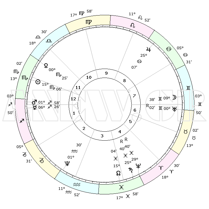 | | ΘΕΣΕΙΣ ΠΛΑΝΗΤΩΝ ΑΣΤΡΟΛΟΓΙΚΟΥ ΧΑΡΤΗ ΤΗΣ ΣΤΙΓΜΗΣ ΑΥΤΗΣ | | | | Πλανήτης | Ζώδιο | Μοίρες | Δεκαήμ. | Σε οίκο | Απόκλιση | | Ακμές των οίκων | | Ηλιος | Σκορπιός | 15°01' | Δεύτερο | 1 | 16 S 20 | | 1ος | 10°01' | Σκορπιός | | Σελήνη | Δίδυμοι | 08°23' | Πρώτο | 7 | 26 N 39 | | 2ος | 09°05' | Τοξότης | | Ερμής | Τοξότης | 06°24' | Πρώτο | 1 | 24 S 00 | | 3ος | 11°59' | Αιγόκερως | | Αφροδίτη | Σκορπιός | 00°19' | Πρώτο | 12 | 10 S 17 | | 4ος | 16°54' | Υδροχόος | | Αρης | Τοξότης | 01°55' | Πρώτο | 1 | 20 S 59 | | 5ος | 19°34' | Ιχθείς | | Δίας | Καρκίνος | 25°07' | Τρίτο | 9 | 21 N 12 | | 6ος | 17°12' | Κριός | | Κρόνος | Ιχθείς | 25°40'R | Τρίτο | 5 | 03 S 58 | | 7ος | 10°01' | Ταύρος | | Ουρανός | Δίδυμοι | 00°02'R | Πρώτο | 7 | 19 N 57 | | 8ος | 09°05' | Δίδυμοι | | Ποσειδώνας | Ιχθείς | 29°40'R | Τρίτο | 5 | 01 S 23 | | 9ος | 11°59' | Καρκίνος | | Πλούτωνας | Υδροχόος | 01°30' | Πρώτο | 3 | 23 S 30 | | 10ος | 16°54' | Λέων | | Β. Δεσμός | Ιχθείς | 15°04' | Δεύτερο | 4 | 05 S 53 | | 11ος | 19°34' | Παρθένος | | Ωροσκόπος | Σκορπιός | 10°01' | Δεύτερο | | | 12ος | 17°12' | Ζυγός | | Μεσουράνημα | Λέων | 16°54' | Δεύτερο | | | |