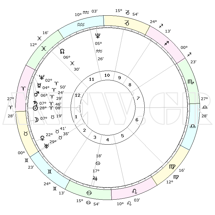 | | ΘΕΣΕΙΣ ΠΛΑΝΗΤΩΝ ΑΣΤΡΟΛΟΓΙΚΟΥ ΧΑΡΤΗ ΤΗΣ ΣΤΙΓΜΗΣ ΑΥΤΗΣ | | | | Πλανήτης | Ζώδιο | Μοίρες | Δεκαήμ. | Σε οίκο | Απόκλιση | | Ακμές των οίκων | | Ηλιος | Κριός | 28°01' | Τρίτο | 2 | 10 N 46 | | 1ος | 16°31' | Υδροχόος | | Σελήνη | Ταύρος | 05°26' | Πρώτο | 2 | 17 N 24 | | 2ος | 02°16' | Κριός | | Ερμής | Κριός | 04°12' | Πρώτο | 2 | 00 S 45 | | 3ος | 07°41' | Ταύρος | | Αφροδίτη | Ταύρος | 22°32' | Τρίτο | 3 | 18 N 42 | | 4ος | 03°38' | Δίδυμοι | | Αρης | Κριός | 06°23' | Πρώτο | 2 | 01 N 39 | | 5ος | 25°33' | Δίδυμοι | | Δίας | Καρκίνος | 17°17' | Δεύτερο | 5 | 22 N 42 | | 6ος | 17°54' | Καρκίνος | | Κρόνος | Κριός | 07°45' | Πρώτο | 2 | 01 N 06 | | 7ος | 16°31' | Λέων | | Ουρανός | Ταύρος | 29°35' | Τρίτο | 3 | 19 N 54 | | 8ος | 02°16' | Ζυγός | | Ποσειδώνας | Κριός | 02°50' | Πρώτο | 2 | 00 S 05 | | 9ος | 07°41' | Σκορπιός | | Πλούτωνας | Υδροχόος | 05°26' | Πρώτο | 12 | 22 S 47 | | 10ος | 03°38' | Τοξότης | | Β. Δεσμός | Ιχθείς | 06°30' | Πρώτο | 1 | 09 S 07 | | 11ος | 25°33' | Τοξότης | | Ωροσκόπος | Υδροχόος | 16°31' | Δεύτερο | | | 12ος | 17°54' | Αιγόκερως | | Μεσουράνημα | Τοξότης | 03°38' | Πρώτο | | | |