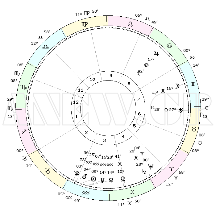 | | ΘΕΣΕΙΣ ΠΛΑΝΗΤΩΝ ΑΣΤΡΟΛΟΓΙΚΟΥ ΧΑΡΤΗ ΤΗΣ ΣΤΙΓΜΗΣ ΑΥΤΗΣ | | | | Πλανήτης | Ζώδιο | Μοίρες | Δεκαήμ. | Σε οίκο | Απόκλιση | | Ακμές των οίκων | | Ηλιος | Υδροχόος | 09°03' | Πρώτο | 3 | 17 S 59 | | 1ος | 09°41' | Σκορπιός | | Σελήνη | Δίδυμοι | 15°49' | Δεύτερο | 8 | 27 N 49 | | 2ος | 08°44' | Τοξότης | | Ερμής | Υδροχόος | 14°09' | Δεύτερο | 3 | 18 S 31 | | 3ος | 11°35' | Αιγόκερως | | Αφροδίτη | Υδροχόος | 14°23' | Δεύτερο | 3 | 17 S 46 | | 4ος | 16°29' | Υδροχόος | | Αρης | Υδροχόος | 04°22' | Πρώτο | 3 | 20 S 10 | | 5ος | 19°10' | Ιχθείς | | Δίας | Καρκίνος | 17°42'R | Δεύτερο | 9 | 22 N 34 | | 6ος | 16°50' | Κριός | | Κρόνος | Ιχθείς | 28°28' | Τρίτο | 5 | 02 S 37 | | 7ος | 09°41' | Ταύρος | | Ουρανός | Ταύρος | 27°28'R | Τρίτο | 7 | 19 N 24 | | 8ος | 08°44' | Δίδυμοι | | Ποσειδώνας | Κριός | 00°04' | Πρώτο | 5 | 01 S 11 | | 9ος | 11°35' | Καρκίνος | | Πλούτωνας | Υδροχόος | 03°36' | Πρώτο | 3 | 23 S 02 | | 10ος | 16°29' | Λέων | | Β. Δεσμός | Ιχθείς | 10°41' | Δεύτερο | 4 | 07 S 33 | | 11ος | 19°10' | Παρθένος | | Ωροσκόπος | Σκορπιός | 09°41' | Πρώτο | | | 12ος | 16°50' | Ζυγός | | Μεσουράνημα | Λέων | 16°29' | Δεύτερο | | | |