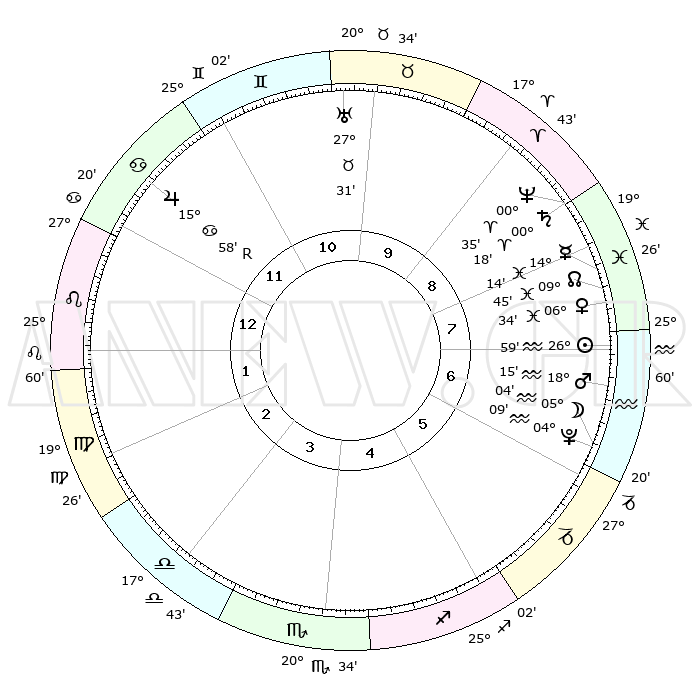 | | ΘΕΣΕΙΣ ΠΛΑΝΗΤΩΝ ΑΣΤΡΟΛΟΓΙΚΟΥ ΧΑΡΤΗ ΤΗΣ ΣΤΙΓΜΗΣ ΑΥΤΗΣ | | | | Πλανήτης | Ζώδιο | Μοίρες | Δεκαήμ. | Σε οίκο | Απόκλιση | | Ακμές των οίκων | | Ηλιος | Υδροχόος | 26°55' | Τρίτο | 7 | 12 S 32 | | 1ος | 06°53' | Λέων | | Σελήνη | Υδροχόος | 04°14' | Πρώτο | 6 | 22 S 07 | | 2ος | 28°27' | Λέων | | Ερμής | Ιχθείς | 14°08' | Δεύτερο | 8 | 06 S 04 | | 3ος | 24°26' | Παρθένος | | Αφροδίτη | Ιχθείς | 06°29' | Πρώτο | 8 | 10 S 30 | | 4ος | 26°13' | Ζυγός | | Αρης | Υδροχόος | 18°12' | Δεύτερο | 7 | 16 S 24 | | 5ος | 01°60' | Τοξότης | | Δίας | Καρκίνος | 15°59'R | Δεύτερο | 12 | 22 N 48 | | 6ος | 06°37' | Αιγόκερως | | Κρόνος | Κριός | 00°17' | Πρώτο | 9 | 01 S 51 | | 7ος | 06°53' | Υδροχόος | | Ουρανός | Ταύρος | 27°31' | Τρίτο | 10 | 19 N 25 | | 8ος | 28°27' | Υδροχόος | | Ποσειδώνας | Κριός | 00°35' | Πρώτο | 9 | 00 S 58 | | 9ος | 24°26' | Ιχθείς | | Πλούτωνας | Υδροχόος | 04°09' | Πρώτο | 6 | 22 S 56 | | 10ος | 26°13' | Κριός | | Β. Δεσμός | Ιχθείς | 09°45' | Πρώτο | 8 | 07 S 55 | | 11ος | 01°60' | Δίδυμοι | | Ωροσκόπος | Λέων | 06°53' | Πρώτο | | | 12ος | 06°37' | Καρκίνος | | Μεσουράνημα | Κριός | 26°13' | Τρίτο | | | |