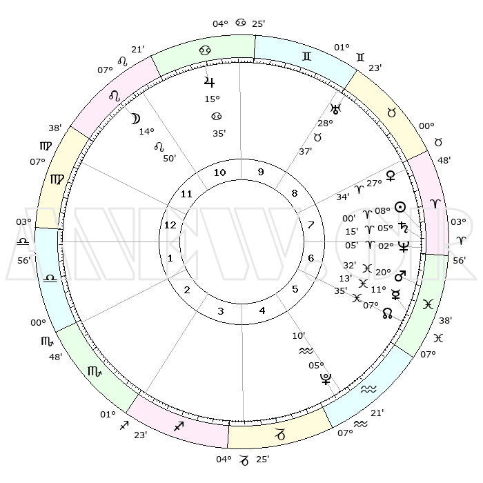 | | ΘΕΣΕΙΣ ΠΛΑΝΗΤΩΝ ΑΣΤΡΟΛΟΓΙΚΟΥ ΧΑΡΤΗ ΤΗΣ ΣΤΙΓΜΗΣ ΑΥΤΗΣ | | | | Πλανήτης | Ζώδιο | Μοίρες | Δεκαήμ. | Σε οίκο | Απόκλιση | | Ακμές των οίκων | | Ηλιος | Κριός | 07°57' | Πρώτο | 7 | 03 N 09 | | 1ος | 16°20' | Παρθένος | | Σελήνη | Λέων | 14°01' | Δεύτερο | 11 | 18 N 43 | | 2ος | 11°48' | Ζυγός | | Ερμής | Ιχθείς | 11°11' | Δεύτερο | 6 | 08 S 03 | | 3ος | 11°38' | Σκορπιός | | Αφροδίτη | Κριός | 27°29' | Τρίτο | 8 | 10 N 02 | | 4ος | 14°34' | Τοξότης | | Αρης | Ιχθείς | 20°29' | Τρίτο | 7 | 04 S 44 | | 5ος | 17°52' | Αιγόκερως | | Δίας | Καρκίνος | 15°35' | Δεύτερο | 10 | 22 N 53 | | 6ος | 18°51' | Υδροχόος | | Κρόνος | Κριός | 05°14' | Πρώτο | 7 | 00 N 08 | | 7ος | 16°20' | Ιχθείς | | Ουρανός | Ταύρος | 28°37' | Τρίτο | 9 | 19 N 41 | | 8ος | 11°48' | Κριός | | Ποσειδώνας | Κριός | 02°05' | Πρώτο | 7 | 00 S 22 | | 9ος | 11°38' | Ταύρος | | Πλούτωνας | Υδροχόος | 05°10' | Πρώτο | 5 | 22 S 48 | | 10ος | 14°34' | Δίδυμοι | | Β. Δεσμός | Ιχθείς | 07°35' | Πρώτο | 6 | 08 S 43 | | 11ος | 17°52' | Καρκίνος | | Ωροσκόπος | Παρθένος | 16°20' | Δεύτερο | | | 12ος | 18°51' | Λέων | | Μεσουράνημα | Δίδυμοι | 14°34' | Δεύτερο | | | |