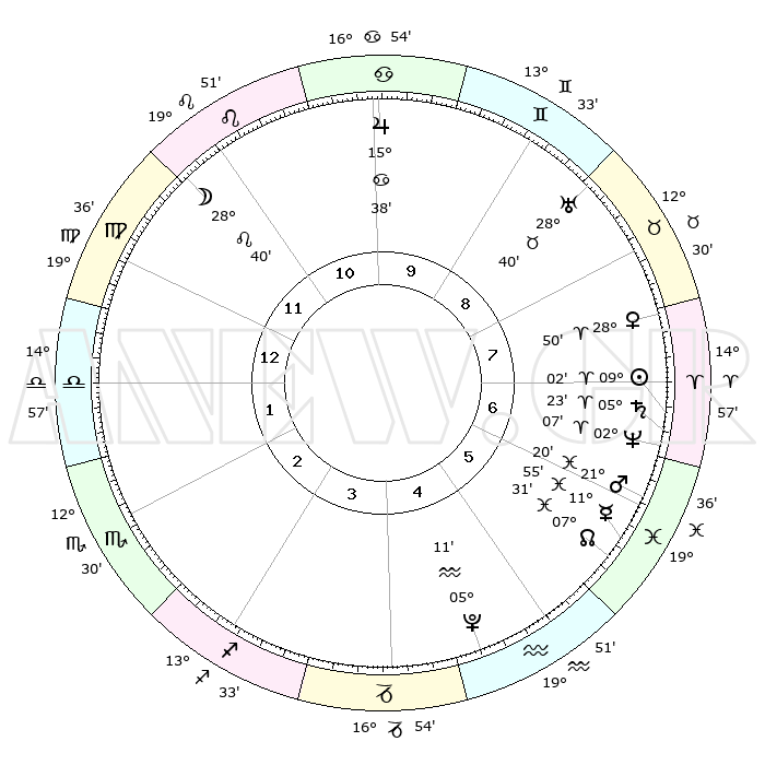 | | ΘΕΣΕΙΣ ΠΛΑΝΗΤΩΝ ΑΣΤΡΟΛΟΓΙΚΟΥ ΧΑΡΤΗ ΤΗΣ ΣΤΙΓΜΗΣ ΑΥΤΗΣ | | | | Πλανήτης | Ζώδιο | Μοίρες | Δεκαήμ. | Σε οίκο | Απόκλιση | | Ακμές των οίκων | | Ηλιος | Κριός | 08°58' | Πρώτο | 7 | 03 N 33 | | 1ος | 28°48' | Παρθένος | | Σελήνη | Λέων | 27°57' | Τρίτο | 11 | 13 N 06 | | 2ος | 25°18' | Ζυγός | | Ερμής | Ιχθείς | 11°53' | Δεύτερο | 6 | 07 S 57 | | 3ος | 25°41' | Σκορπιός | | Αφροδίτη | Κριός | 28°46' | Τρίτο | 8 | 10 N 32 | | 4ος | 28°39' | Τοξότης | | Αρης | Ιχθείς | 21°18' | Τρίτο | 6 | 04 S 25 | | 5ος | 01°38' | Υδροχόος | | Δίας | Καρκίνος | 15°38' | Δεύτερο | 10 | 22 N 53 | | 6ος | 02°07' | Ιχθείς | | Κρόνος | Κριός | 05°22' | Πρώτο | 7 | 00 N 11 | | 7ος | 28°48' | Ιχθείς | | Ουρανός | Ταύρος | 28°40' | Τρίτο | 9 | 19 N 41 | | 8ος | 25°18' | Κριός | | Ποσειδώνας | Κριός | 02°07' | Πρώτο | 7 | 00 S 21 | | 9ος | 25°41' | Ταύρος | | Πλούτωνας | Υδροχόος | 05°11' | Πρώτο | 5 | 22 S 48 | | 10ος | 28°39' | Δίδυμοι | | Β. Δεσμός | Ιχθείς | 07°32' | Πρώτο | 6 | 08 S 45 | | 11ος | 01°38' | Λέων | | Ωροσκόπος | Παρθένος | 28°48' | Τρίτο | | | 12ος | 02°07' | Παρθένος | | Μεσουράνημα | Δίδυμοι | 28°39' | Τρίτο | | | |