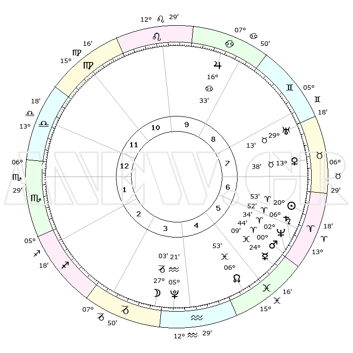 | | ΘΕΣΕΙΣ ΠΛΑΝΗΤΩΝ ΑΣΤΡΟΛΟΓΙΚΟΥ ΧΑΡΤΗ ΤΗΣ ΣΤΙΓΜΗΣ ΑΥΤΗΣ | | | | Πλανήτης | Ζώδιο | Μοίρες | Δεκαήμ. | Σε οίκο | Απόκλιση | | Ακμές των οίκων | | Ηλιος | Κριός | 20°48' | Τρίτο | 7 | 08 N 07 | | 1ος | 09°41' | Ζυγός | | Σελήνη | Αιγόκερως | 25°56' | Τρίτο | 4 | 24 S 22 | | 2ος | 06°55' | Σκορπιός | | Ερμής | Ιχθείς | 24°02' | Τρίτο | 6 | 04 S 33 | | 3ος | 07°44' | Τοξότης | | Αφροδίτη | Ταύρος | 13°31' | Δεύτερο | 8 | 15 N 52 | | 4ος | 10°54' | Αιγόκερως | | Αρης | Κριός | 00°40' | Πρώτο | 6 | 00 S 39 | | 5ος | 13°50' | Υδροχόος | | Δίας | Καρκίνος | 16°33' | Δεύτερο | 10 | 22 N 47 | | 6ος | 13°52' | Ιχθείς | | Κρόνος | Κριός | 06°51' | Πρώτο | 6 | 00 N 45 | | 7ος | 09°41' | Κριός | | Ουρανός | Ταύρος | 29°13' | Τρίτο | 8 | 19 N 49 | | 8ος | 06°55' | Ταύρος | | Ποσειδώνας | Κριός | 02°34' | Πρώτο | 6 | 00 S 11 | | 9ος | 07°44' | Δίδυμοι | | Πλούτωνας | Υδροχόος | 05°21' | Πρώτο | 4 | 22 S 47 | | 10ος | 10°54' | Καρκίνος | | Β. Δεσμός | Ιχθείς | 06°54' | Πρώτο | 5 | 08 S 59 | | 11ος | 13°50' | Λέων | | Ωροσκόπος | Ζυγός | 09°41' | Πρώτο | | | 12ος | 13°52' | Παρθένος | | Μεσουράνημα | Καρκίνος | 10°54' | Δεύτερο | | | |