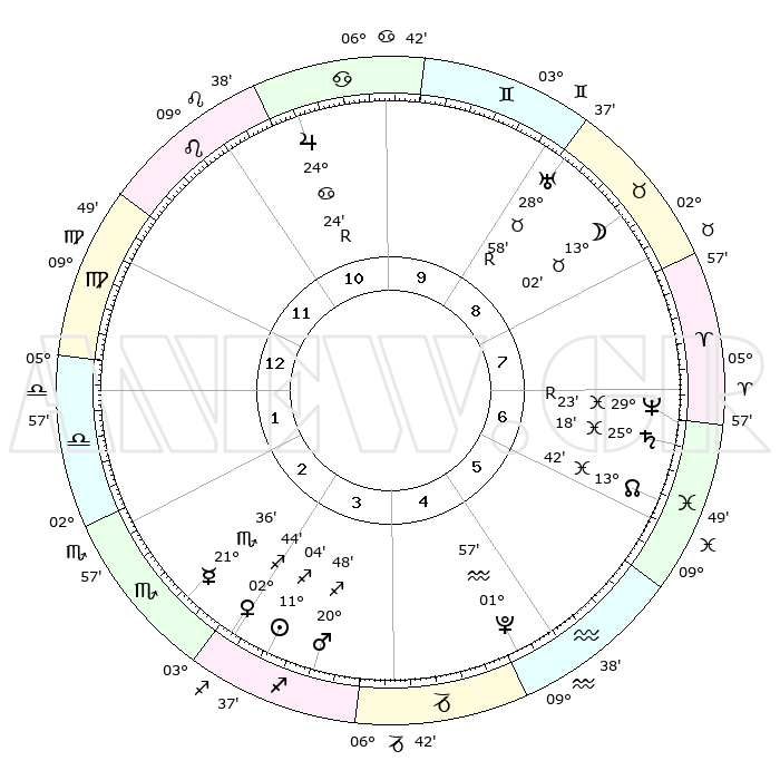 | | ΘΕΣΕΙΣ ΠΛΑΝΗΤΩΝ ΑΣΤΡΟΛΟΓΙΚΟΥ ΧΑΡΤΗ ΤΗΣ ΣΤΙΓΜΗΣ ΑΥΤΗΣ | | | | Πλανήτης | Ζώδιο | Μοίρες | Δεκαήμ. | Σε οίκο | Απόκλιση | | Ακμές των οίκων | | Ηλιος | Τοξότης | 11°02' | Δεύτερο | 3 | 22 S 06 | | 1ος | 26°57' | Παρθένος | | Σελήνη | Ταύρος | 12°35' | Δεύτερο | 8 | 19 N 40 | | 2ος | 23°18' | Ζυγός | | Ερμής | Σκορπιός | 21°35' | Τρίτο | 2 | 15 S 38 | | 3ος | 23°37' | Σκορπιός | | Αφροδίτη | Τοξότης | 02°42' | Πρώτο | 3 | 20 S 04 | | 4ος | 26°34' | Τοξότης | | Αρης | Τοξότης | 20°46' | Τρίτο | 3 | 23 S 47 | | 5ος | 29°35' | Αιγόκερως | | Δίας | Καρκίνος | 24°24'R | Τρίτο | 10 | 21 N 24 | | 6ος | 00°09' | Ιχθείς | | Κρόνος | Ιχθείς | 25°18' | Τρίτο | 6 | 04 S 02 | | 7ος | 26°57' | Ιχθείς | | Ουρανός | Ταύρος | 28°58'R | Τρίτο | 9 | 19 N 43 | | 8ος | 23°18' | Κριός | | Ποσειδώνας | Ιχθείς | 29°23'R | Τρίτο | 7 | 01 S 29 | | 9ος | 23°37' | Ταύρος | | Πλούτωνας | Υδροχόος | 01°57' | Πρώτο | 5 | 23 S 23 | | 10ος | 26°34' | Δίδυμοι | | Β. Δεσμός | Ιχθείς | 13°42' | Δεύτερο | 6 | 06 S 24 | | 11ος | 29°35' | Καρκίνος | | Ωροσκόπος | Παρθένος | 26°57' | Τρίτο | | | 12ος | 00°09' | Παρθένος | | Μεσουράνημα | Δίδυμοι | 26°34' | Τρίτο | | | |