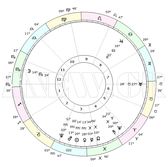 | | ΘΕΣΕΙΣ ΠΛΑΝΗΤΩΝ ΑΣΤΡΟΛΟΓΙΚΟΥ ΧΑΡΤΗ ΤΗΣ ΣΤΙΓΜΗΣ ΑΥΤΗΣ | | | | Πλανήτης | Ζώδιο | Μοίρες | Δεκαήμ. | Σε οίκο | Απόκλιση | | Ακμές των οίκων | | Ηλιος | Υδροχόος | 20°10' | Τρίτο | 4 | 14 S 45 | | 1ος | 09°08' | Σκορπιός | | Σελήνη | Σκορπιός | 13°39' | Δεύτερο | 1 | 20 S 27 | | 2ος | 08°08' | Τοξότης | | Ερμής | Ιχθείς | 03°28' | Πρώτο | 4 | 11 S 14 | | 3ος | 10°56' | Αιγόκερως | | Αφροδίτη | Υδροχόος | 28°08' | Τρίτο | 4 | 13 S 29 | | 4ος | 15°47' | Υδροχόος | | Αρης | Υδροχόος | 12°57' | Δεύτερο | 3 | 17 S 57 | | 5ος | 18°29' | Ιχθείς | | Δίας | Καρκίνος | 16°32'R | Δεύτερο | 9 | 22 N 44 | | 6ος | 16°14' | Κριός | | Κρόνος | Ιχθείς | 29°34' | Τρίτο | 5 | 02 S 09 | | 7ος | 09°08' | Ταύρος | | Ουρανός | Ταύρος | 27°28' | Τρίτο | 7 | 19 N 24 | | 8ος | 08°08' | Δίδυμοι | | Ποσειδώνας | Κριός | 00°23' | Πρώτο | 5 | 01 S 03 | | 9ος | 10°56' | Καρκίνος | | Πλούτωνας | Υδροχόος | 03°57' | Πρώτο | 3 | 22 S 59 | | 10ος | 15°47' | Λέων | | Β. Δεσμός | Ιχθείς | 10°06' | Δεύτερο | 4 | 07 S 47 | | 11ος | 18°29' | Παρθένος | | Ωροσκόπος | Σκορπιός | 09°08' | Πρώτο | | | 12ος | 16°14' | Ζυγός | | Μεσουράνημα | Λέων | 15°47' | Δεύτερο | | | |