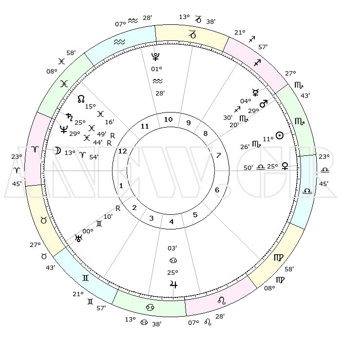 | | ΘΕΣΕΙΣ ΠΛΑΝΗΤΩΝ ΑΣΤΡΟΛΟΓΙΚΟΥ ΧΑΡΤΗ ΤΗΣ ΣΤΙΓΜΗΣ ΑΥΤΗΣ | | | | Πλανήτης | Ζώδιο | Μοίρες | Δεκαήμ. | Σε οίκο | Απόκλιση | | Ακμές των οίκων | | Ηλιος | Σκορπιός | 11°08' | Δεύτερο | 11 | 15 S 10 | | 1ος | 11°45' | Τοξότης | | Σελήνη | Κριός | 09°34' | Πρώτο | 4 | 05 N 36 | | 2ος | 14°48' | Αιγόκερως | | Ερμής | Τοξότης | 04°17' | Πρώτο | 12 | 23 S 50 | | 3ος | 22°29' | Υδροχόος | | Αφροδίτη | Ζυγός | 25°28' | Τρίτο | 10 | 08 S 30 | | 4ος | 28°24' | Ιχθείς | | Αρης | Σκορπιός | 29°08' | Τρίτο | 12 | 20 S 22 | | 5ος | 27°44' | Κριός | | Δίας | Καρκίνος | 25°02' | Τρίτο | 8 | 21 N 12 | | 6ος | 21°15' | Ταύρος | | Κρόνος | Ιχθείς | 25°49'R | Τρίτο | 3 | 03 S 55 | | 7ος | 11°45' | Δίδυμοι | | Ουρανός | Δίδυμοι | 00°11'R | Πρώτο | 6 | 19 N 59 | | 8ος | 14°48' | Καρκίνος | | Ποσειδώνας | Ιχθείς | 29°45'R | Τρίτο | 4 | 01 S 21 | | 9ος | 22°29' | Λέων | | Πλούτωνας | Υδροχόος | 01°28' | Πρώτο | 2 | 23 S 30 | | 10ος | 28°24' | Παρθένος | | Β. Δεσμός | Ιχθείς | 15°17' | Δεύτερο | 3 | 05 S 48 | | 11ος | 27°44' | Ζυγός | | Ωροσκόπος | Τοξότης | 11°45' | Δεύτερο | | | 12ος | 21°15' | Σκορπιός | | Μεσουράνημα | Παρθένος | 28°24' | Τρίτο | | | |