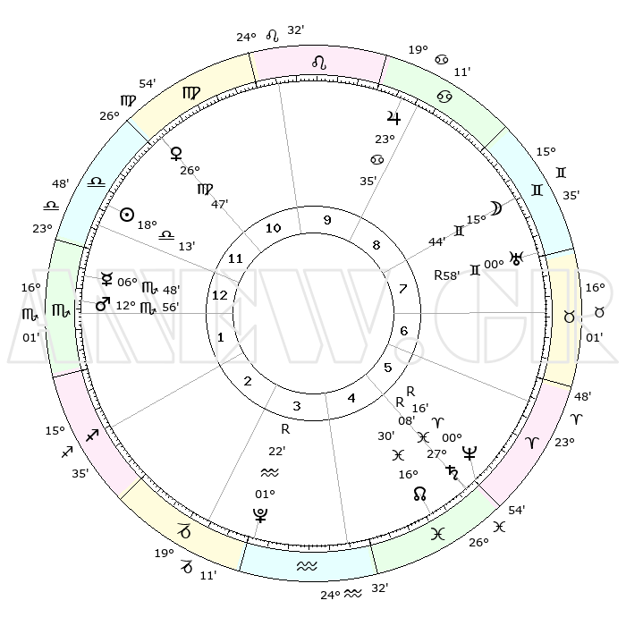| ΘΕΣΕΙΣ ΠΛΑΝΗΤΩΝ ΑΣΤΡΟΛΟΓΙΚΟΥ ΧΑΡΤΗ ΤΗΣ ΣΤΙΓΜΗΣ ΑΥΤΗΣ | | Πλανήτης | Ζώδιο | Μοίρες | Δεκαήμ. | Σε οίκο | Απόκλιση | | Ακμές των οίκων | Ηλιος | Ζυγός | 18°06' | Δεύτερο | 1 | 07 S 06 | | 1ος | 12°13' | Ζυγός | Σελήνη | Δίδυμοι | 14°02' | Δεύτερο | 9 | 27 N 38 | | 2ος | 09°37' | Σκορπιός | Ερμής | Σκορπιός | 06°38' | Πρώτο | 1 | 14 S 57 | | 3ος | 10°31' | Τοξότης | Αφροδίτη | Παρθένος | 26°38' | Τρίτο | 12 | 02 N 41 | | 4ος | 13°47' | Αιγόκερως | Αρης | Σκορπιός | 12°51' | Δεύτερο | 2 | 15 S 52 | | 5ος | 16°43' | Υδροχόος | Δίας | Καρκίνος | 23°35' | Τρίτο | 10 | 21 N 25 | | 6ος | 16°37' | Ιχθείς | Κρόνος | Ιχθείς | 27°09'R | Τρίτο | 6 | 03 S 26 | | 7ος | 12°13' | Κριός | Ουρανός | Δίδυμοι | 00°58'R | Πρώτο | 8 | 20 N 08 | | 8ος | 09°37' | Ταύρος | Ποσειδώνας | Κριός | 00°16'R | Πρώτο | 6 | 01 S 09 | | 9ος | 10°31' | Δίδυμοι | Πλούτωνας | Υδροχόος | 01°22'R | Πρώτο | 4 | 23 S 32 | | 10ος | 13°47' | Καρκίνος | Β. Δεσμός | Ιχθείς | 16°30' | Δεύτερο | 5 | 05 S 20 | | 11ος | 16°43' | Λέων | Ωροσκόπος | Ζυγός | 12°13' | Δεύτερο | | | 12ος | 16°37' | Παρθένος | Μεσουράνημα | Καρκίνος | 13°47' | Δεύτερο | | | |