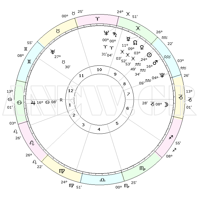 | | ΘΕΣΕΙΣ ΠΛΑΝΗΤΩΝ ΑΣΤΡΟΛΟΓΙΚΟΥ ΧΑΡΤΗ ΤΗΣ ΣΤΙΓΜΗΣ ΑΥΤΗΣ | | | | Πλανήτης | Ζώδιο | Μοίρες | Δεκαήμ. | Σε οίκο | Απόκλιση | | Ακμές των οίκων | | Ηλιος | Υδροχόος | 24°45' | Τρίτο | 9 | 13 S 16 | | 1ος | 19°42' | Δίδυμοι | | Σελήνη | Αιγόκερως | 07°37' | Πρώτο | 7 | 27 S 50 | | 2ος | 11°23' | Καρκίνος | | Ερμής | Ιχθείς | 10°56' | Δεύτερο | 10 | 07 S 43 | | 3ος | 02°42' | Λέων | | Αφροδίτη | Ιχθείς | 03°48' | Πρώτο | 10 | 11 S 29 | | 4ος | 27°30' | Λέων | | Αρης | Υδροχόος | 16°31' | Δεύτερο | 9 | 16 S 55 | | 5ος | 29°38' | Παρθένος | | Δίας | Καρκίνος | 16°09'R | Δεύτερο | 2 | 22 N 47 | | 6ος | 09°55' | Σκορπιός | | Κρόνος | Κριός | 00°03' | Πρώτο | 11 | 01 S 57 | | 7ος | 19°42' | Τοξότης | | Ουρανός | Ταύρος | 27°30' | Τρίτο | 12 | 19 N 25 | | 8ος | 11°23' | Αιγόκερως | | Ποσειδώνας | Κριός | 00°31' | Πρώτο | 11 | 01 S 00 | | 9ος | 02°42' | Υδροχόος | | Πλούτωνας | Υδροχόος | 04°05' | Πρώτο | 9 | 22 S 57 | | 10ος | 27°30' | Υδροχόος | | Β. Δεσμός | Ιχθείς | 09°52' | Πρώτο | 10 | 07 S 52 | | 11ος | 29°38' | Ιχθείς | | Ωροσκόπος | Δίδυμοι | 19°42' | Δεύτερο | | | 12ος | 09°55' | Ταύρος | | Μεσουράνημα | Υδροχόος | 27°30' | Τρίτο | | | |