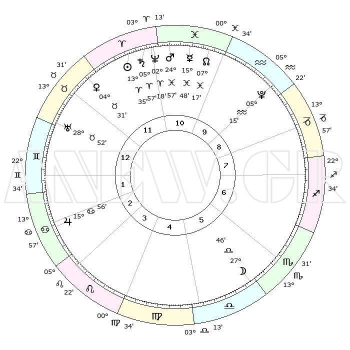 | | ΘΕΣΕΙΣ ΠΛΑΝΗΤΩΝ ΑΣΤΡΟΛΟΓΙΚΟΥ ΧΑΡΤΗ ΤΗΣ ΣΤΙΓΜΗΣ ΑΥΤΗΣ | | | | Πλανήτης | Ζώδιο | Μοίρες | Δεκαήμ. | Σε οίκο | Απόκλιση | | Ακμές των οίκων | | Ηλιος | Κριός | 13°31' | Δεύτερο | 11 | 05 N 20 | | 1ος | 28°05' | Ταύρος | | Σελήνη | Ζυγός | 26°59' | Τρίτο | 6 | 14 S 00 | | 2ος | 23°17' | Δίδυμοι | | Ερμής | Ιχθείς | 15°45' | Δεύτερο | 11 | 07 S 08 | | 3ος | 14°47' | Καρκίνος | | Αφροδίτη | Ταύρος | 04°26' | Πρώτο | 12 | 12 N 40 | | 4ος | 07°24' | Λέων | | Αρης | Ιχθείς | 24°54' | Τρίτο | 11 | 02 S 59 | | 5ος | 05°33' | Παρθένος | | Δίας | Καρκίνος | 15°56' | Δεύτερο | 3 | 22 N 51 | | 6ος | 13°41' | Ζυγός | | Κρόνος | Κριός | 05°57' | Πρώτο | 11 | 00 N 24 | | 7ος | 28°05' | Σκορπιός | | Ουρανός | Ταύρος | 28°52' | Τρίτο | 1 | 19 N 44 | | 8ος | 23°17' | Τοξότης | | Ποσειδώνας | Κριός | 02°18' | Πρώτο | 11 | 00 S 17 | | 9ος | 14°47' | Αιγόκερως | | Πλούτωνας | Υδροχόος | 05°15' | Πρώτο | 9 | 22 S 47 | | 10ος | 07°24' | Υδροχόος | | Β. Δεσμός | Ιχθείς | 07°17' | Πρώτο | 11 | 08 S 50 | | 11ος | 05°33' | Ιχθείς | | Ωροσκόπος | Ταύρος | 28°05' | Τρίτο | | | 12ος | 13°41' | Κριός | | Μεσουράνημα | Υδροχόος | 07°24' | Πρώτο | | | |