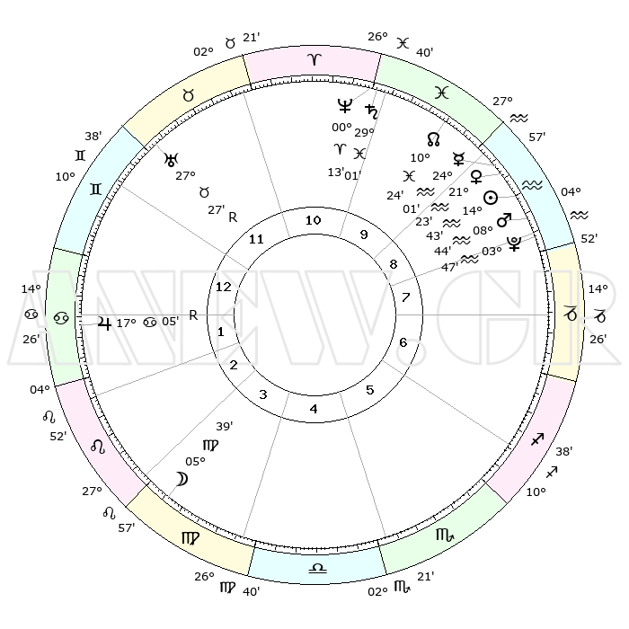 | | ΘΕΣΕΙΣ ΠΛΑΝΗΤΩΝ ΑΣΤΡΟΛΟΓΙΚΟΥ ΧΑΡΤΗ ΤΗΣ ΣΤΙΓΜΗΣ ΑΥΤΗΣ | | | | Πλανήτης | Ζώδιο | Μοίρες | Δεκαήμ. | Σε οίκο | Απόκλιση | | Ακμές των οίκων | | Ηλιος | Υδροχόος | 14°39' | Δεύτερο | 9 | 16 S 26 | | 1ος | 20°52' | Δίδυμοι | | Σελήνη | Παρθένος | 04°41' | Πρώτο | 4 | 10 N 10 | | 2ος | 12°25' | Καρκίνος | | Ερμής | Υδροχόος | 23°53' | Τρίτο | 9 | 15 S 10 | | 3ος | 03°46' | Λέων | | Αφροδίτη | Υδροχόος | 21°18' | Τρίτο | 9 | 15 S 43 | | 4ος | 28°44' | Λέων | | Αρης | Υδροχόος | 08°41' | Πρώτο | 9 | 19 S 06 | | 5ος | 01°04' | Ζυγός | | Δίας | Καρκίνος | 17°05'R | Δεύτερο | 2 | 22 N 39 | | 6ος | 11°22' | Σκορπιός | | Κρόνος | Ιχθείς | 29°00' | Τρίτο | 10 | 02 S 23 | | 7ος | 20°52' | Τοξότης | | Ουρανός | Ταύρος | 27°27'R | Τρίτο | 12 | 19 N 24 | | 8ος | 12°25' | Αιγόκερως | | Ποσειδώνας | Κριός | 00°13' | Πρώτο | 10 | 01 S 07 | | 9ος | 03°46' | Υδροχόος | | Πλούτωνας | Υδροχόος | 03°47' | Πρώτο | 9 | 23 S 00 | | 10ος | 28°44' | Υδροχόος | | Β. Δεσμός | Ιχθείς | 10°24' | Δεύτερο | 10 | 07 S 40 | | 11ος | 01°04' | Κριός | | Ωροσκόπος | Δίδυμοι | 20°52' | Τρίτο | | | 12ος | 11°22' | Ταύρος | | Μεσουράνημα | Υδροχόος | 28°44' | Τρίτο | | | |