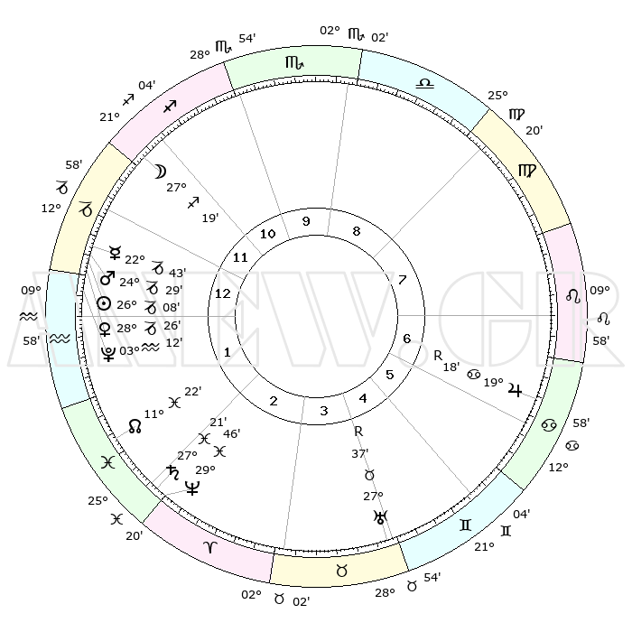 | | ΘΕΣΕΙΣ ΠΛΑΝΗΤΩΝ ΑΣΤΡΟΛΟΓΙΚΟΥ ΧΑΡΤΗ ΤΗΣ ΣΤΙΓΜΗΣ ΑΥΤΗΣ | | | | Πλανήτης | Ζώδιο | Μοίρες | Δεκαήμ. | Σε οίκο | Απόκλιση | | Ακμές των οίκων | | Ηλιος | Αιγόκερως | 26°03' | Τρίτο | 1 | 20 S 56 | | 1ος | 09°21' | Αιγόκερως | | Σελήνη | Τοξότης | 26°25' | Τρίτο | 12 | 28 S 18 | | 2ος | 18°54' | Υδροχόος | | Ερμής | Αιγόκερως | 22°35' | Τρίτο | 1 | 23 S 22 | | 3ος | 29°12' | Ιχθείς | | Αφροδίτη | Αιγόκερως | 28°20' | Τρίτο | 1 | 21 S 29 | | 4ος | 01°30' | Ταύρος | | Αρης | Αιγόκερως | 24°25' | Τρίτο | 1 | 22 S 11 | | 5ος | 26°26' | Ταύρος | | Δίας | Καρκίνος | 19°19'R | Δεύτερο | 7 | 22 N 19 | | 6ος | 17°47' | Δίδυμοι | | Κρόνος | Ιχθείς | 27°20' | Τρίτο | 2 | 03 S 05 | | 7ος | 09°21' | Καρκίνος | | Ουρανός | Ταύρος | 27°37'R | Τρίτο | 5 | 19 N 26 | | 8ος | 18°54' | Λέων | | Ποσειδώνας | Ιχθείς | 29°46' | Τρίτο | 3 | 01 S 19 | | 9ος | 29°12' | Παρθένος | | Πλούτωνας | Υδροχόος | 03°12' | Πρώτο | 1 | 23 S 07 | | 10ος | 01°30' | Σκορπιός | | Β. Δεσμός | Ιχθείς | 11°22' | Δεύτερο | 2 | 07 S 18 | | 11ος | 26°26' | Σκορπιός | | Ωροσκόπος | Αιγόκερως | 09°21' | Πρώτο | | | 12ος | 17°47' | Τοξότης | | Μεσουράνημα | Σκορπιός | 01°30' | Πρώτο | | | |