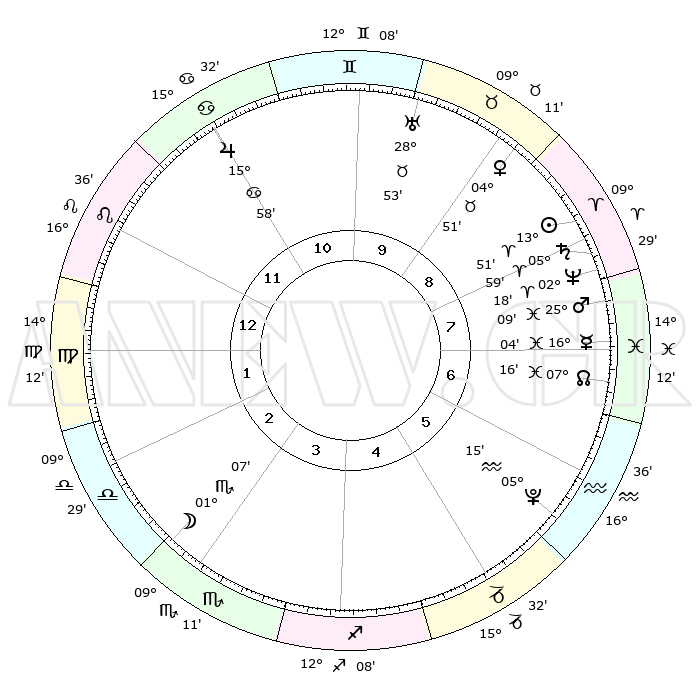 | | ΘΕΣΕΙΣ ΠΛΑΝΗΤΩΝ ΑΣΤΡΟΛΟΓΙΚΟΥ ΧΑΡΤΗ ΤΗΣ ΣΤΙΓΜΗΣ ΑΥΤΗΣ | | | | Πλανήτης | Ζώδιο | Μοίρες | Δεκαήμ. | Σε οίκο | Απόκλιση | | Ακμές των οίκων | | Ηλιος | Κριός | 13°47' | Δεύτερο | 8 | 05 N 26 | | 1ος | 24°20' | Λέων | | Σελήνη | Σκορπιός | 00°17' | Πρώτο | 3 | 15 S 22 | | 2ος | 17°36' | Παρθένος | | Ερμής | Ιχθείς | 16°00' | Δεύτερο | 7 | 07 S 04 | | 3ος | 15°43' | Ζυγός | | Αφροδίτη | Ταύρος | 04°46' | Πρώτο | 9 | 12 N 47 | | 4ος | 18°32' | Σκορπιός | | Αρης | Ιχθείς | 25°06' | Τρίτο | 8 | 02 S 54 | | 5ος | 23°07' | Τοξότης | | Δίας | Καρκίνος | 15°57' | Δεύτερο | 11 | 22 N 51 | | 6ος | 25°34' | Αιγόκερως | | Κρόνος | Κριός | 05°59' | Πρώτο | 8 | 00 N 25 | | 7ος | 24°20' | Υδροχόος | | Ουρανός | Ταύρος | 28°53' | Τρίτο | 10 | 19 N 44 | | 8ος | 17°36' | Ιχθείς | | Ποσειδώνας | Κριός | 02°18' | Πρώτο | 8 | 00 S 17 | | 9ος | 15°43' | Κριός | | Πλούτωνας | Υδροχόος | 05°15' | Πρώτο | 6 | 22 S 47 | | 10ος | 18°32' | Ταύρος | | Β. Δεσμός | Ιχθείς | 07°16' | Πρώτο | 7 | 08 S 50 | | 11ος | 23°07' | Δίδυμοι | | Ωροσκόπος | Λέων | 24°20' | Τρίτο | | | 12ος | 25°34' | Καρκίνος | | Μεσουράνημα | Ταύρος | 18°32' | Δεύτερο | | | |