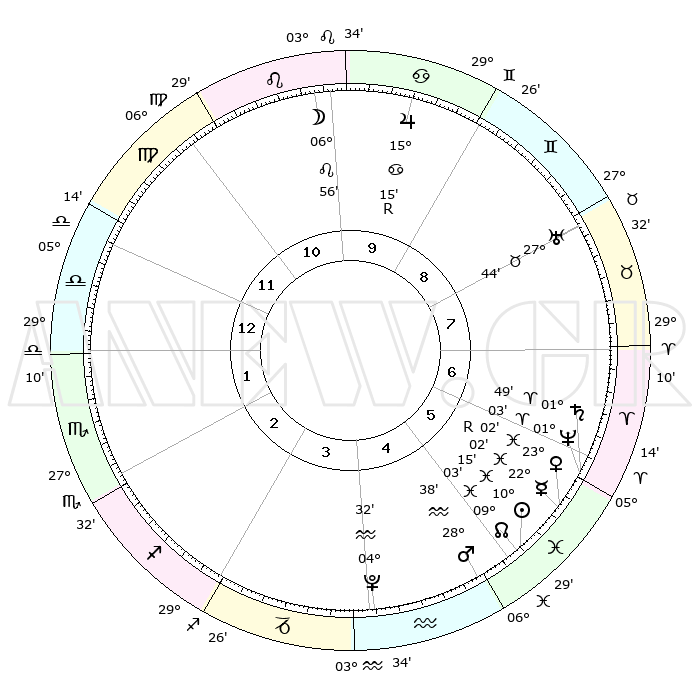 | | ΘΕΣΕΙΣ ΠΛΑΝΗΤΩΝ ΑΣΤΡΟΛΟΓΙΚΟΥ ΧΑΡΤΗ ΤΗΣ ΣΤΙΓΜΗΣ ΑΥΤΗΣ | | | | Πλανήτης | Ζώδιο | Μοίρες | Δεκαήμ. | Σε οίκο | Απόκλιση | | Ακμές των οίκων | | Ηλιος | Ιχθείς | 10°11' | Δεύτερο | 5 | 07 S 45 | | 1ος | 10°28' | Ζυγός | | Σελήνη | Λέων | 06°03' | Πρώτο | 10 | 21 N 32 | | 2ος | 07°45' | Σκορπιός | | Ερμής | Ιχθείς | 22°04'R | Τρίτο | 6 | 00 S 09 | | 3ος | 08°35' | Τοξότης | | Αφροδίτη | Ιχθείς | 22°57' | Τρίτο | 6 | 04 S 03 | | 4ος | 11°47' | Αιγόκερως | | Αρης | Υδροχόος | 28°35' | Τρίτο | 5 | 12 S 59 | | 5ος | 14°43' | Υδροχόος | | Δίας | Καρκίνος | 15°16'R | Δεύτερο | 10 | 22 N 54 | | 6ος | 14°42' | Ιχθείς | | Κρόνος | Κριός | 01°49' | Πρώτο | 6 | 01 S 14 | | 7ος | 10°28' | Κριός | | Ουρανός | Ταύρος | 27°44' | Τρίτο | 8 | 19 N 28 | | 8ος | 07°45' | Ταύρος | | Ποσειδώνας | Κριός | 01°02' | Πρώτο | 6 | 00 S 47 | | 9ος | 08°35' | Δίδυμοι | | Πλούτωνας | Υδροχόος | 04°32' | Πρώτο | 4 | 22 S 53 | | 10ος | 11°47' | Καρκίνος | | Β. Δεσμός | Ιχθείς | 09°03' | Πρώτο | 5 | 08 S 10 | | 11ος | 14°43' | Λέων | | Ωροσκόπος | Ζυγός | 10°28' | Δεύτερο | | | 12ος | 14°42' | Παρθένος | | Μεσουράνημα | Καρκίνος | 11°47' | Δεύτερο | | | |