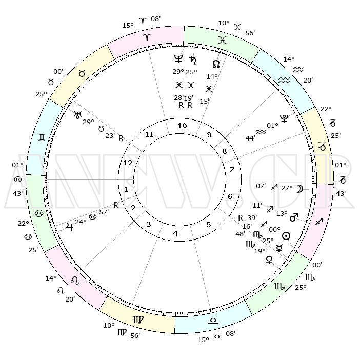 | | ΘΕΣΕΙΣ ΠΛΑΝΗΤΩΝ ΑΣΤΡΟΛΟΓΙΚΟΥ ΧΑΡΤΗ ΤΗΣ ΣΤΙΓΜΗΣ ΑΥΤΗΣ | | | | Πλανήτης | Ζώδιο | Μοίρες | Δεκαήμ. | Σε οίκο | Απόκλιση | | Ακμές των οίκων | | Ηλιος | Τοξότης | 00°36' | Πρώτο | 6 | 20 S 16 | | 1ος | 10°51' | Δίδυμοι | | Σελήνη | Τοξότης | 26°25' | Τρίτο | 7 | 28 S 17 | | 2ος | 03°43' | Καρκίνος | | Ερμής | Σκορπιός | 25°20'R | Τρίτο | 6 | 17 S 52 | | 3ος | 24°55' | Καρκίνος | | Αφροδίτη | Σκορπιός | 19°43' | Δεύτερο | 6 | 16 S 43 | | 4ος | 18°40' | Λέων | | Αρης | Τοξότης | 13°09' | Δεύτερο | 7 | 22 S 57 | | 5ος | 19°06' | Παρθένος | | Δίας | Καρκίνος | 24°57'R | Τρίτο | 3 | 21 N 16 | | 6ος | 28°55' | Ζυγός | | Κρόνος | Ιχθείς | 25°19'R | Τρίτο | 11 | 04 S 04 | | 7ος | 10°51' | Τοξότης | | Ουρανός | Ταύρος | 29°24'R | Τρίτο | 12 | 19 N 49 | | 8ος | 03°43' | Αιγόκερως | | Ποσειδώνας | Ιχθείς | 29°28'R | Τρίτο | 11 | 01 S 28 | | 9ος | 24°56' | Αιγόκερως | | Πλούτωνας | Υδροχόος | 01°44' | Πρώτο | 9 | 23 S 26 | | 10ος | 18°40' | Υδροχόος | | Β. Δεσμός | Ιχθείς | 14°15' | Δεύτερο | 10 | 06 S 12 | | 11ος | 19°06' | Ιχθείς | | Ωροσκόπος | Δίδυμοι | 10°51' | Δεύτερο | | | 12ος | 28°55' | Κριός | | Μεσουράνημα | Υδροχόος | 18°40' | Δεύτερο | | | |