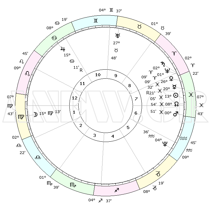 | | ΘΕΣΕΙΣ ΠΛΑΝΗΤΩΝ ΑΣΤΡΟΛΟΓΙΚΟΥ ΧΑΡΤΗ ΤΗΣ ΣΤΙΓΜΗΣ ΑΥΤΗΣ | | | | Πλανήτης | Ζώδιο | Μοίρες | Δεκαήμ. | Σε οίκο | Απόκλιση | | Ακμές των οίκων | | Ηλιος | Ιχθείς | 13°01' | Δεύτερο | 8 | 06 S 40 | | 1ος | 19°56' | Λέων | | Σελήνη | Παρθένος | 14°25' | Δεύτερο | 2 | 05 N 40 | | 2ος | 12°44' | Παρθένος | | Ερμής | Ιχθείς | 20°24'R | Τρίτο | 8 | 00 S 29 | | 3ος | 10°22' | Ζυγός | | Αφροδίτη | Ιχθείς | 26°28' | Τρίτο | 8 | 02 S 37 | | 4ος | 13°02' | Σκορπιός | | Αρης | Ιχθείς | 00°48' | Πρώτο | 7 | 12 S 13 | | 5ος | 17°57' | Τοξότης | | Δίας | Καρκίνος | 15°11'R | Δεύτερο | 11 | 22 N 55 | | 6ος | 20°51' | Αιγόκερως | | Κρόνος | Κριός | 02°09' | Πρώτο | 8 | 01 S 06 | | 7ος | 19°56' | Υδροχόος | | Ουρανός | Ταύρος | 27°47' | Τρίτο | 10 | 19 N 29 | | 8ος | 12°44' | Ιχθείς | | Ποσειδώνας | Κριός | 01°09' | Πρώτο | 8 | 00 S 45 | | 9ος | 10°22' | Κριός | | Πλούτωνας | Υδροχόος | 04°36' | Πρώτο | 6 | 22 S 52 | | 10ος | 13°02' | Ταύρος | | Β. Δεσμός | Ιχθείς | 08°54' | Πρώτο | 7 | 08 S 14 | | 11ος | 17°57' | Δίδυμοι | | Ωροσκόπος | Λέων | 19°56' | Δεύτερο | | | 12ος | 20°51' | Καρκίνος | | Μεσουράνημα | Ταύρος | 13°02' | Δεύτερο | | | |