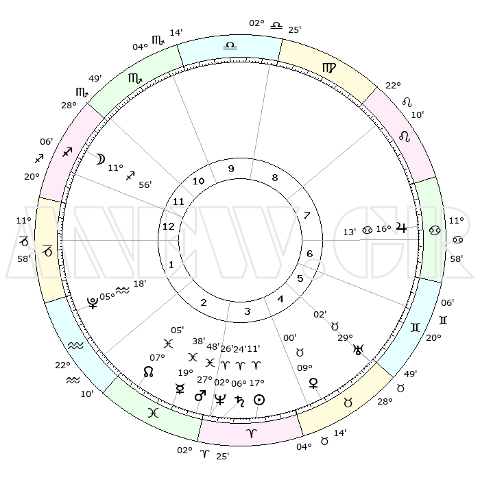 | | ΘΕΣΕΙΣ ΠΛΑΝΗΤΩΝ ΑΣΤΡΟΛΟΓΙΚΟΥ ΧΑΡΤΗ ΤΗΣ ΣΤΙΓΜΗΣ ΑΥΤΗΣ | | | | Πλανήτης | Ζώδιο | Μοίρες | Δεκαήμ. | Σε οίκο | Απόκλιση | | Ακμές των οίκων | | Ηλιος | Κριός | 17°07' | Δεύτερο | 4 | 06 N 43 | | 1ος | 20°48' | Τοξότης | | Σελήνη | Τοξότης | 11°11' | Δεύτερο | 12 | 27 S 13 | | 2ος | 25°44' | Αιγόκερως | | Ερμής | Ιχθείς | 19°34' | Δεύτερο | 3 | 06 S 02 | | 3ος | 04°47' | Ιχθείς | | Αφροδίτη | Ταύρος | 08°56' | Πρώτο | 5 | 14 N 17 | | 4ος | 09°58' | Κριός | | Αρης | Ιχθείς | 27°45' | Τρίτο | 3 | 01 S 50 | | 5ος | 07°48' | Ταύρος | | Δίας | Καρκίνος | 16°13' | Δεύτερο | 7 | 22 N 49 | | 6ος | 00°21' | Δίδυμοι | | Κρόνος | Κριός | 06°24' | Πρώτο | 3 | 00 N 35 | | 7ος | 20°48' | Δίδυμοι | | Ουρανός | Ταύρος | 29°02' | Τρίτο | 5 | 19 N 46 | | 8ος | 25°44' | Καρκίνος | | Ποσειδώνας | Κριός | 02°26' | Πρώτο | 3 | 00 S 14 | | 9ος | 04°47' | Παρθένος | | Πλούτωνας | Υδροχόος | 05°18' | Πρώτο | 2 | 22 S 47 | | 10ος | 09°58' | Ζυγός | | Β. Δεσμός | Ιχθείς | 07°05' | Πρώτο | 3 | 08 S 54 | | 11ος | 07°48' | Σκορπιός | | Ωροσκόπος | Τοξότης | 20°48' | Τρίτο | | | 12ος | 00°21' | Τοξότης | | Μεσουράνημα | Ζυγός | 09°58' | Πρώτο | | | |