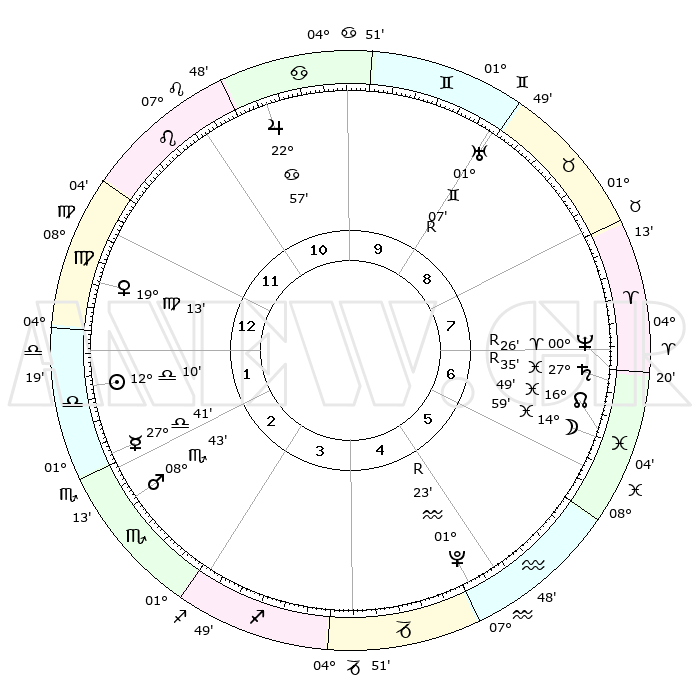 | ΘΕΣΕΙΣ ΠΛΑΝΗΤΩΝ ΑΣΤΡΟΛΟΓΙΚΟΥ ΧΑΡΤΗ ΤΗΣ ΣΤΙΓΜΗΣ ΑΥΤΗΣ | | Πλανήτης | Ζώδιο | Μοίρες | Δεκαήμ. | Σε οίκο | Απόκλιση | | Ακμές των οίκων | Ηλιος | Ζυγός | 12°03' | Δεύτερο | 2 | 04 S 46 | | 1ος | 29°15' | Λέων | Σελήνη | Ιχθείς | 13°17' | Δεύτερο | 7 | 06 S 59 | | 2ος | 23°02' | Παρθένος | Ερμής | Ζυγός | 27°30' | Τρίτο | 3 | 11 S 08 | | 3ος | 21°38' | Ζυγός | Αφροδίτη | Παρθένος | 19°04' | Δεύτερο | 1 | 05 N 36 | | 4ος | 24°32' | Σκορπιός | Αρης | Σκορπιός | 08°38' | Πρώτο | 3 | 14 S 29 | | 5ος | 28°47' | Τοξότης | Δίας | Καρκίνος | 22°56' | Τρίτο | 11 | 21 N 31 | | 6ος | 00°48' | Υδροχόος | Κρόνος | Ιχθείς | 27°35'R | Τρίτο | 8 | 03 S 16 | | 7ος | 29°15' | Υδροχόος | Ουρανός | Δίδυμοι | 01°07'R | Πρώτο | 10 | 20 N 10 | | 8ος | 23°02' | Ιχθείς | Ποσειδώνας | Κριός | 00°26'R | Πρώτο | 8 | 01 S 05 | | 9ος | 21°38' | Κριός | Πλούτωνας | Υδροχόος | 01°23'R | Πρώτο | 6 | 23 S 32 | | 10ος | 24°32' | Ταύρος | Β. Δεσμός | Ιχθείς | 16°50' | Δεύτερο | 7 | 05 S 12 | | 11ος | 28°47' | Δίδυμοι | Ωροσκόπος | Λέων | 29°15' | Τρίτο | | | 12ος | 00°48' | Λέων | Μεσουράνημα | Ταύρος | 24°32' | Τρίτο | | | |