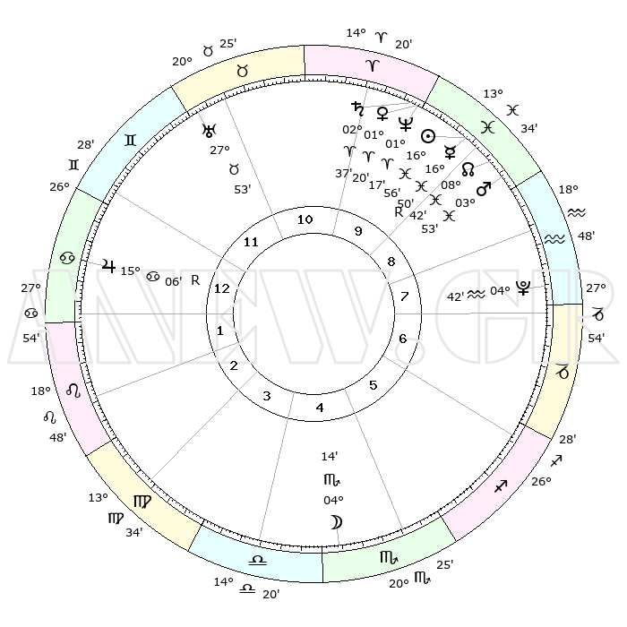 | | ΘΕΣΕΙΣ ΠΛΑΝΗΤΩΝ ΑΣΤΡΟΛΟΓΙΚΟΥ ΧΑΡΤΗ ΤΗΣ ΣΤΙΓΜΗΣ ΑΥΤΗΣ | | | | Πλανήτης | Ζώδιο | Μοίρες | Δεκαήμ. | Σε οίκο | Απόκλιση | | Ακμές των οίκων | | Ηλιος | Ιχθείς | 16°52' | Δεύτερο | 9 | 05 S 11 | | 1ος | 08°09' | Καρκίνος | | Σελήνη | Σκορπιός | 03°26' | Πρώτο | 5 | 16 S 41 | | 2ος | 28°37' | Καρκίνος | | Ερμής | Ιχθείς | 16°54'R | Δεύτερο | 9 | 01 S 49 | | 3ος | 21°04' | Λέων | | Αφροδίτη | Κριός | 01°15' | Πρώτο | 10 | 00 S 38 | | 4ος | 18°43' | Παρθένος | | Αρης | Ιχθείς | 03°50' | Πρώτο | 9 | 11 S 07 | | 5ος | 23°48' | Ζυγός | | Δίας | Καρκίνος | 15°06'R | Δεύτερο | 1 | 22 N 56 | | 6ος | 02°59' | Τοξότης | | Κρόνος | Κριός | 02°37' | Πρώτο | 10 | 00 S 55 | | 7ος | 08°09' | Αιγόκερως | | Ουρανός | Ταύρος | 27°53' | Τρίτο | 11 | 19 N 31 | | 8ος | 28°37' | Αιγόκερως | | Ποσειδώνας | Κριός | 01°17' | Πρώτο | 10 | 00 S 41 | | 9ος | 21°04' | Υδροχόος | | Πλούτωνας | Υδροχόος | 04°42' | Πρώτο | 8 | 22 S 51 | | 10ος | 18°43' | Ιχθείς | | Β. Δεσμός | Ιχθείς | 08°42' | Πρώτο | 9 | 08 S 18 | | 11ος | 23°48' | Κριός | | Ωροσκόπος | Καρκίνος | 08°09' | Πρώτο | | | 12ος | 02°59' | Δίδυμοι | | Μεσουράνημα | Ιχθείς | 18°43' | Δεύτερο | | | |
