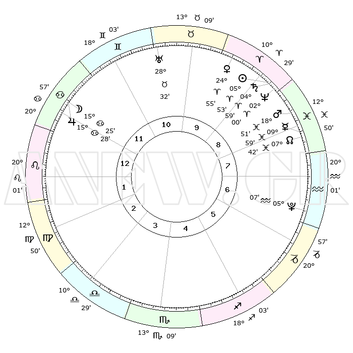 | | ΘΕΣΕΙΣ ΠΛΑΝΗΤΩΝ ΑΣΤΡΟΛΟΓΙΚΟΥ ΧΑΡΤΗ ΤΗΣ ΣΤΙΓΜΗΣ ΑΥΤΗΣ | | | | Πλανήτης | Ζώδιο | Μοίρες | Δεκαήμ. | Σε οίκο | Απόκλιση | | Ακμές των οίκων | | Ηλιος | Κριός | 05°49' | Πρώτο | 9 | 02 N 19 | | 1ος | 03°43' | Λέων | | Σελήνη | Καρκίνος | 14°37' | Δεύτερο | 12 | 26 N 51 | | 2ος | 25°02' | Λέων | | Ερμής | Ιχθείς | 09°57' | Πρώτο | 8 | 08 S 07 | | 3ος | 20°35' | Παρθένος | | Αφροδίτη | Κριός | 24°51' | Τρίτο | 10 | 09 N 00 | | 4ος | 22°03' | Ζυγός | | Αρης | Ιχθείς | 18°48' | Δεύτερο | 8 | 05 S 24 | | 5ος | 27°59' | Σκορπιός | | Δίας | Καρκίνος | 15°28' | Δεύτερο | 12 | 22 N 54 | | 6ος | 03°05' | Αιγόκερως | | Κρόνος | Κριός | 04°58' | Πρώτο | 9 | 00 N 01 | | 7ος | 03°44' | Υδροχόος | | Ουρανός | Ταύρος | 28°32' | Τρίτο | 11 | 19 N 40 | | 8ος | 25°02' | Υδροχόος | | Ποσειδώνας | Κριός | 02°00' | Πρώτο | 9 | 00 S 24 | | 9ος | 20°35' | Ιχθείς | | Πλούτωνας | Υδροχόος | 05°07' | Πρώτο | 7 | 22 S 48 | | 10ος | 22°03' | Κριός | | Β. Δεσμός | Ιχθείς | 07°42' | Πρώτο | 8 | 08 S 41 | | 11ος | 27°59' | Ταύρος | | Ωροσκόπος | Λέων | 03°43' | Πρώτο | | | 12ος | 03°05' | Καρκίνος | | Μεσουράνημα | Κριός | 22°03' | Τρίτο | | | |
