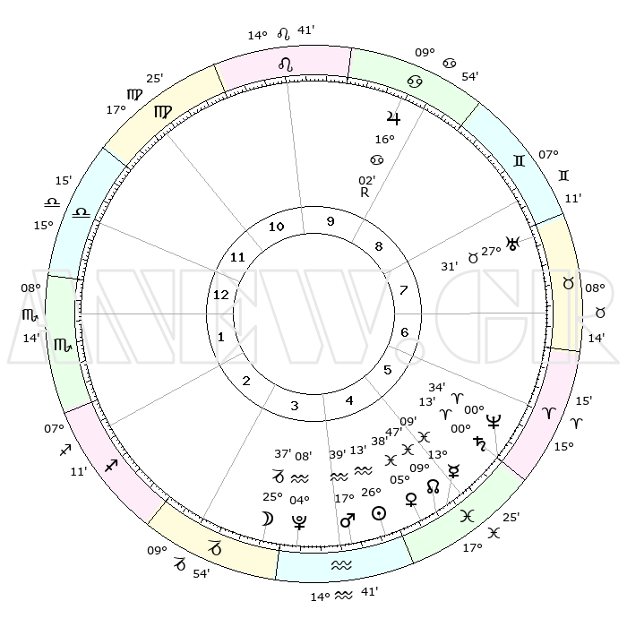 | | ΘΕΣΕΙΣ ΠΛΑΝΗΤΩΝ ΑΣΤΡΟΛΟΓΙΚΟΥ ΧΑΡΤΗ ΤΗΣ ΣΤΙΓΜΗΣ ΑΥΤΗΣ | | | | Πλανήτης | Ζώδιο | Μοίρες | Δεκαήμ. | Σε οίκο | Απόκλιση | | Ακμές των οίκων | | Ηλιος | Υδροχόος | 26°10' | Τρίτο | 4 | 12 S 48 | | 1ος | 20°51' | Ζυγός | | Σελήνη | Αιγόκερως | 24°53' | Τρίτο | 4 | 24 S 45 | | 2ος | 18°44' | Σκορπιός | | Ερμής | Ιχθείς | 13°04' | Δεύτερο | 5 | 06 S 38 | | 3ος | 20°05' | Τοξότης | | Αφροδίτη | Ιχθείς | 05°33' | Πρώτο | 5 | 10 S 50 | | 4ος | 23°43' | Αιγόκερως | | Αρης | Υδροχόος | 17°37' | Δεύτερο | 4 | 16 S 35 | | 5ος | 26°40' | Υδροχόος | | Δίας | Καρκίνος | 16°02'R | Δεύτερο | 9 | 22 N 48 | | 6ος | 26°04' | Ιχθείς | | Κρόνος | Κριός | 00°12' | Πρώτο | 6 | 01 S 53 | | 7ος | 20°51' | Κριός | | Ουρανός | Ταύρος | 27°31' | Τρίτο | 8 | 19 N 25 | | 8ος | 18°44' | Ταύρος | | Ποσειδώνας | Κριός | 00°34' | Πρώτο | 6 | 00 S 59 | | 9ος | 20°05' | Δίδυμοι | | Πλούτωνας | Υδροχόος | 04°08' | Πρώτο | 4 | 22 S 57 | | 10ος | 23°43' | Καρκίνος | | Β. Δεσμός | Ιχθείς | 09°48' | Πρώτο | 5 | 07 S 54 | | 11ος | 26°40' | Λέων | | Ωροσκόπος | Ζυγός | 20°51' | Τρίτο | | | 12ος | 26°04' | Παρθένος | | Μεσουράνημα | Καρκίνος | 23°43' | Τρίτο | | | |