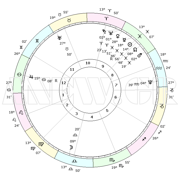 | | ΘΕΣΕΙΣ ΠΛΑΝΗΤΩΝ ΑΣΤΡΟΛΟΓΙΚΟΥ ΧΑΡΤΗ ΤΗΣ ΣΤΙΓΜΗΣ ΑΥΤΗΣ | | | | Πλανήτης | Ζώδιο | Μοίρες | Δεκαήμ. | Σε οίκο | Απόκλιση | | Ακμές των οίκων | | Ηλιος | Ιχθείς | 14°53' | Δεύτερο | 9 | 05 S 57 | | 1ος | 07°45' | Καρκίνος | | Σελήνη | Ζυγός | 08°30' | Πρώτο | 4 | 05 S 46 | | 2ος | 28°13' | Καρκίνος | | Ερμής | Ιχθείς | 18°50'R | Δεύτερο | 10 | 01 S 01 | | 3ος | 20°37' | Λέων | | Αφροδίτη | Ιχθείς | 28°46' | Τρίτο | 10 | 01 S 40 | | 4ος | 18°13' | Παρθένος | | Αρης | Ιχθείς | 02°16' | Πρώτο | 9 | 11 S 41 | | 5ος | 23°14' | Ζυγός | | Δίας | Καρκίνος | 15°08'R | Δεύτερο | 1 | 22 N 55 | | 6ος | 02°28' | Τοξότης | | Κρόνος | Κριός | 02°22' | Πρώτο | 10 | 01 S 01 | | 7ος | 07°45' | Αιγόκερως | | Ουρανός | Ταύρος | 27°50' | Τρίτο | 11 | 19 N 30 | | 8ος | 28°13' | Αιγόκερως | | Ποσειδώνας | Κριός | 01°13' | Πρώτο | 10 | 00 S 43 | | 9ος | 20°37' | Υδροχόος | | Πλούτωνας | Υδροχόος | 04°39' | Πρώτο | 8 | 22 S 51 | | 10ος | 18°13' | Ιχθείς | | Β. Δεσμός | Ιχθείς | 08°49' | Πρώτο | 9 | 08 S 16 | | 11ος | 23°14' | Κριός | | Ωροσκόπος | Καρκίνος | 07°45' | Πρώτο | | | 12ος | 02°28' | Δίδυμοι | | Μεσουράνημα | Ιχθείς | 18°13' | Δεύτερο | | | |