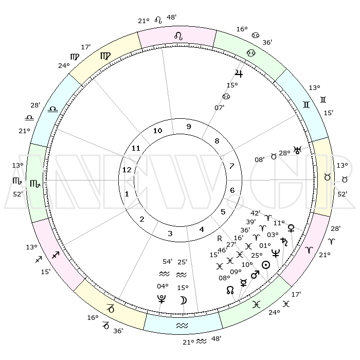 | | ΘΕΣΕΙΣ ΠΛΑΝΗΤΩΝ ΑΣΤΡΟΛΟΓΙΚΟΥ ΧΑΡΤΗ ΤΗΣ ΣΤΙΓΜΗΣ ΑΥΤΗΣ | | | | Πλανήτης | Ζώδιο | Μοίρες | Δεκαήμ. | Σε οίκο | Απόκλιση | | Ακμές των οίκων | | Ηλιος | Ιχθείς | 24°32' | Τρίτο | 1 | 02 S 10 | | 1ος | 10°58' | Υδροχόος | | Σελήνη | Υδροχόος | 06°00' | Πρώτο | 12 | 21 S 33 | | 2ος | 26°24' | Ιχθείς | | Ερμής | Ιχθείς | 10°10'R | Δεύτερο | 1 | 05 S 32 | | 3ος | 02°55' | Ταύρος | | Αφροδίτη | Κριός | 10°47' | Δεύτερο | 2 | 03 N 18 | | 4ος | 29°38' | Ταύρος | | Αρης | Ιχθείς | 09°52' | Πρώτο | 1 | 08 S 52 | | 5ος | 21°45' | Δίδυμοι | | Δίας | Καρκίνος | 15°07' | Δεύτερο | 6 | 22 N 56 | | 6ος | 13°43' | Καρκίνος | | Κρόνος | Κριός | 03°33' | Πρώτο | 2 | 00 S 32 | | 7ος | 10°58' | Λέων | | Ουρανός | Ταύρος | 28°07' | Τρίτο | 3 | 19 N 34 | | 8ος | 26°24' | Παρθένος | | Ποσειδώνας | Κριός | 01°34' | Πρώτο | 2 | 00 S 34 | | 9ος | 02°55' | Σκορπιός | | Πλούτωνας | Υδροχόος | 04°53' | Πρώτο | 12 | 22 S 49 | | 10ος | 29°38' | Σκορπιός | | Β. Δεσμός | Ιχθείς | 08°18' | Πρώτο | 1 | 08 S 27 | | 11ος | 21°45' | Τοξότης | | Ωροσκόπος | Υδροχόος | 10°58' | Δεύτερο | | | 12ος | 13°43' | Αιγόκερως | | Μεσουράνημα | Σκορπιός | 29°38' | Τρίτο | | | |