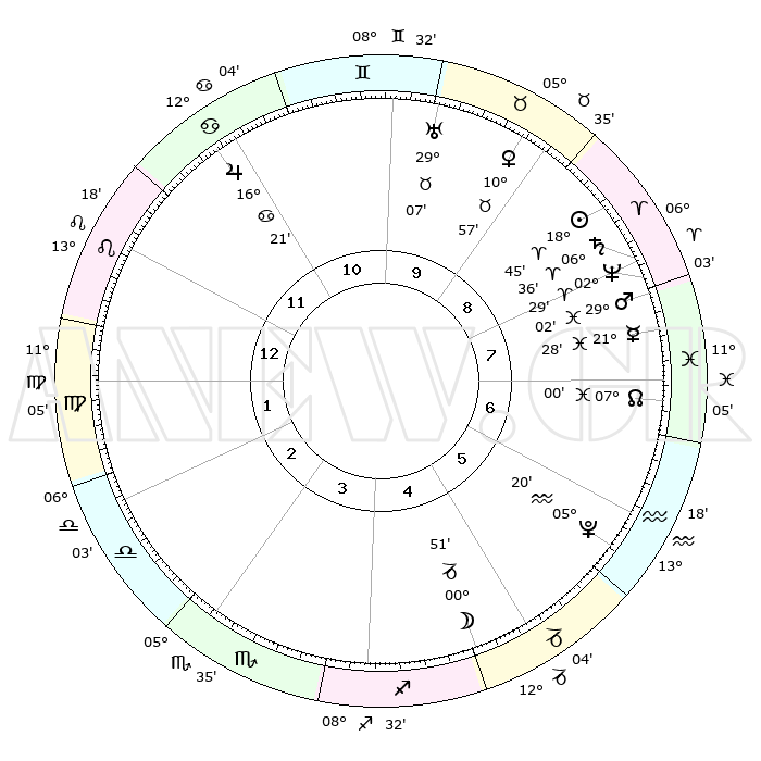 | | ΘΕΣΕΙΣ ΠΛΑΝΗΤΩΝ ΑΣΤΡΟΛΟΓΙΚΟΥ ΧΑΡΤΗ ΤΗΣ ΣΤΙΓΜΗΣ ΑΥΤΗΣ | | | | Πλανήτης | Ζώδιο | Μοίρες | Δεκαήμ. | Σε οίκο | Απόκλιση | | Ακμές των οίκων | | Ηλιος | Κριός | 18°41' | Δεύτερο | 9 | 07 N 19 | | 1ος | 23°40' | Λέων | | Σελήνη | Αιγόκερως | 00°08' | Πρώτο | 5 | 28 S 14 | | 2ος | 16°51' | Παρθένος | | Ερμής | Ιχθείς | 21°24' | Τρίτο | 8 | 05 S 27 | | 3ος | 14°54' | Ζυγός | | Αφροδίτη | Ταύρος | 10°53' | Δεύτερο | 9 | 14 N 58 | | 4ος | 17°42' | Σκορπιός | | Αρης | Ιχθείς | 28°60' | Τρίτο | 8 | 01 S 20 | | 5ος | 22°20' | Τοξότης | | Δίας | Καρκίνος | 16°21' | Δεύτερο | 11 | 22 N 48 | | 6ος | 24°51' | Αιγόκερως | | Κρόνος | Κριός | 06°36' | Πρώτο | 8 | 00 N 39 | | 7ος | 23°40' | Υδροχόος | | Ουρανός | Ταύρος | 29°06' | Τρίτο | 10 | 19 N 47 | | 8ος | 16°51' | Ιχθείς | | Ποσειδώνας | Κριός | 02°29' | Πρώτο | 8 | 00 S 13 | | 9ος | 14°54' | Κριός | | Πλούτωνας | Υδροχόος | 05°20' | Πρώτο | 6 | 22 S 47 | | 10ος | 17°42' | Ταύρος | | Β. Δεσμός | Ιχθείς | 07°00' | Πρώτο | 7 | 08 S 56 | | 11ος | 22°20' | Δίδυμοι | | Ωροσκόπος | Λέων | 23°40' | Τρίτο | | | 12ος | 24°51' | Καρκίνος | | Μεσουράνημα | Ταύρος | 17°42' | Δεύτερο | | | |