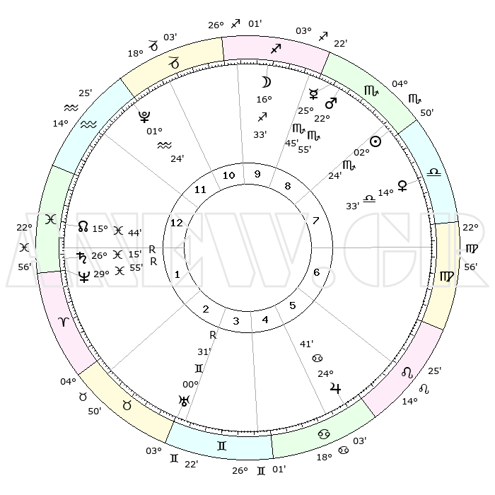 | | ΘΕΣΕΙΣ ΠΛΑΝΗΤΩΝ ΑΣΤΡΟΛΟΓΙΚΟΥ ΧΑΡΤΗ ΤΗΣ ΣΤΙΓΜΗΣ ΑΥΤΗΣ | | | | Πλανήτης | Ζώδιο | Μοίρες | Δεκαήμ. | Σε οίκο | Απόκλιση | | Ακμές των οίκων | | Ηλιος | Σκορπιός | 01°57' | Πρώτο | 1 | 12 S 09 | | 1ος | 09°22' | Ζυγός | | Σελήνη | Τοξότης | 11°09' | Δεύτερο | 3 | 27 S 09 | | 2ος | 06°35' | Σκορπιός | | Ερμής | Σκορπιός | 25°13' | Τρίτο | 2 | 21 S 37 | | 3ος | 07°23' | Τοξότης | | Αφροδίτη | Ζυγός | 13°59' | Δεύτερο | 1 | 04 S 06 | | 4ος | 10°33' | Αιγόκερως | | Αρης | Σκορπιός | 22°36' | Τρίτο | 2 | 18 S 44 | | 5ος | 13°28' | Υδροχόος | | Δίας | Καρκίνος | 24°39' | Τρίτο | 10 | 21 N 15 | | 6ος | 13°31' | Ιχθείς | | Κρόνος | Ιχθείς | 26°16'R | Τρίτο | 6 | 03 S 46 | | 7ος | 09°22' | Κριός | | Ουρανός | Δίδυμοι | 00°31'R | Πρώτο | 8 | 20 N 03 | | 8ος | 06°35' | Ταύρος | | Ποσειδώνας | Ιχθείς | 29°56'R | Τρίτο | 6 | 01 S 17 | | 9ος | 07°23' | Δίδυμοι | | Πλούτωνας | Υδροχόος | 01°24' | Πρώτο | 4 | 23 S 32 | | 10ος | 10°33' | Καρκίνος | | Β. Δεσμός | Ιχθείς | 15°46' | Δεύτερο | 6 | 05 S 37 | | 11ος | 13°28' | Λέων | | Ωροσκόπος | Ζυγός | 09°22' | Πρώτο | | | 12ος | 13°31' | Παρθένος | | Μεσουράνημα | Καρκίνος | 10°33' | Δεύτερο | | | |