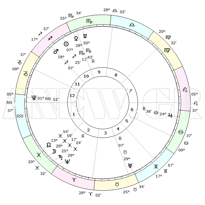 | | ΘΕΣΕΙΣ ΠΛΑΝΗΤΩΝ ΑΣΤΡΟΛΟΓΙΚΟΥ ΧΑΡΤΗ ΤΗΣ ΣΤΙΓΜΗΣ ΑΥΤΗΣ | | | | Πλανήτης | Ζώδιο | Μοίρες | Δεκαήμ. | Σε οίκο | Απόκλιση | | Ακμές των οίκων | | Ηλιος | Τοξότης | 07°23' | Πρώτο | 10 | 21 S 32 | | 1ος | 22°27' | Αιγόκερως | | Σελήνη | Ιχθείς | 20°34' | Τρίτο | 2 | 03 S 14 | | 2ος | 05°07' | Ιχθείς | | Ερμής | Σκορπιός | 20°43'R | Τρίτο | 10 | 15 S 30 | | 3ος | 14°35' | Κριός | | Αφροδίτη | Σκορπιός | 28°09' | Τρίτο | 10 | 19 S 00 | | 4ος | 14°25' | Ταύρος | | Αρης | Τοξότης | 18°05' | Δεύτερο | 11 | 23 S 33 | | 5ος | 07°49' | Δίδυμοι | | Δίας | Καρκίνος | 24°38'R | Τρίτο | 7 | 21 N 21 | | 6ος | 29°03' | Δίδυμοι | | Κρόνος | Ιχθείς | 25°17' | Τρίτο | 2 | 04 S 03 | | 7ος | 22°27' | Καρκίνος | | Ουρανός | Ταύρος | 29°07'R | Τρίτο | 4 | 19 N 45 | | 8ος | 05°07' | Παρθένος | | Ποσειδώνας | Ιχθείς | 29°24'R | Τρίτο | 2 | 01 S 29 | | 9ος | 14°35' | Ζυγός | | Πλούτωνας | Υδροχόος | 01°52' | Πρώτο | 1 | 23 S 24 | | 10ος | 14°25' | Σκορπιός | | Β. Δεσμός | Ιχθείς | 13°54' | Δεύτερο | 2 | 06 S 20 | | 11ος | 07°49' | Τοξότης | | Ωροσκόπος | Αιγόκερως | 22°27' | Τρίτο | | | 12ος | 29°03' | Τοξότης | | Μεσουράνημα | Σκορπιός | 14°25' | Δεύτερο | | | |