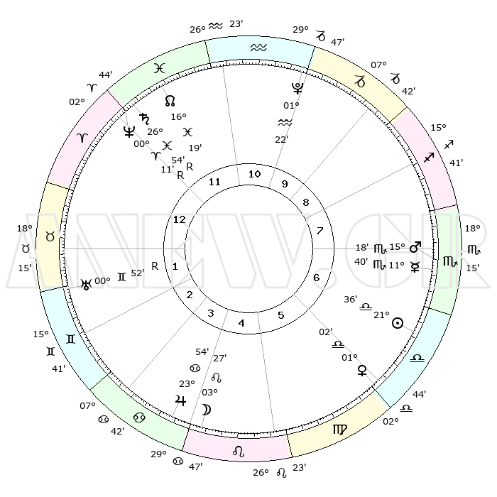 | ΘΕΣΕΙΣ ΠΛΑΝΗΤΩΝ ΑΣΤΡΟΛΟΓΙΚΟΥ ΧΑΡΤΗ ΤΗΣ ΣΤΙΓΜΗΣ ΑΥΤΗΣ | | Πλανήτης | Ζώδιο | Μοίρες | Δεκαήμ. | Σε οίκο | Απόκλιση | | Ακμές των οίκων | Ηλιος | Ζυγός | 21°26' | Τρίτο | 8 | 08 S 21 | | 1ος | 14°03' | Υδροχόος | Σελήνη | Λέων | 01°10' | Πρώτο | 6 | 23 N 36 | | 2ος | 29°42' | Ιχθείς | Ερμής | Σκορπιός | 11°25' | Δεύτερο | 9 | 16 S 51 | | 3ος | 05°36' | Ταύρος | Αφροδίτη | Ζυγός | 00°49' | Πρώτο | 8 | 01 N 04 | | 4ος | 01°53' | Δίδυμοι | Αρης | Σκορπιός | 15°11' | Δεύτερο | 9 | 16 S 36 | | 5ος | 23°53' | Δίδυμοι | Δίας | Καρκίνος | 23°53' | Τρίτο | 6 | 21 N 22 | | 6ος | 16°03' | Καρκίνος | Κρόνος | Ιχθείς | 26°55'R | Τρίτο | 1 | 03 S 31 | | 7ος | 14°03' | Λέων | Ουρανός | Δίδυμοι | 00°52'R | Πρώτο | 3 | 20 N 07 | | 8ος | 29°42' | Παρθένος | Ποσειδώνας | Κριός | 00°11'R | Πρώτο | 2 | 01 S 11 | | 9ος | 05°36' | Σκορπιός | Πλούτωνας | Υδροχόος | 01°22' | Πρώτο | 12 | 23 S 32 | | 10ος | 01°53' | Τοξότης | Β. Δεσμός | Ιχθείς | 16°19' | Δεύτερο | 1 | 05 S 24 | | 11ος | 23°53' | Τοξότης | Ωροσκόπος | Υδροχόος | 14°03' | Δεύτερο | | | 12ος | 16°03' | Αιγόκερως | Μεσουράνημα | Τοξότης | 01°53' | Πρώτο | | | |