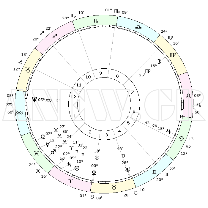 | | ΘΕΣΕΙΣ ΠΛΑΝΗΤΩΝ ΑΣΤΡΟΛΟΓΙΚΟΥ ΧΑΡΤΗ ΤΗΣ ΣΤΙΓΜΗΣ ΑΥΤΗΣ | | | | Πλανήτης | Ζώδιο | Μοίρες | Δεκαήμ. | Σε οίκο | Απόκλιση | | Ακμές των οίκων | | Ηλιος | Κριός | 10°18' | Δεύτερο | 3 | 04 N 05 | | 1ος | 12°05' | Αιγόκερως | | Σελήνη | Παρθένος | 15°34' | Δεύτερο | 8 | 05 N 07 | | 2ος | 22°19' | Υδροχόος | | Ερμής | Ιχθείς | 12°53' | Δεύτερο | 2 | 07 S 47 | | 3ος | 02°34' | Κριός | | Αφροδίτη | Ταύρος | 00°25' | Πρώτο | 3 | 11 N 10 | | 4ος | 04°21' | Ταύρος | | Αρης | Ιχθείς | 22°21' | Τρίτο | 2 | 04 S 00 | | 5ος | 28°55' | Ταύρος | | Δίας | Καρκίνος | 15°43' | Δεύτερο | 7 | 22 N 53 | | 6ος | 20°12' | Δίδυμοι | | Κρόνος | Κριός | 05°32' | Πρώτο | 3 | 00 N 15 | | 7ος | 12°05' | Καρκίνος | | Ουρανός | Ταύρος | 28°43' | Τρίτο | 4 | 19 N 42 | | 8ος | 22°19' | Λέων | | Ποσειδώνας | Κριός | 02°10' | Πρώτο | 2 | 00 S 20 | | 9ος | 02°34' | Ζυγός | | Πλούτωνας | Υδροχόος | 05°12' | Πρώτο | 1 | 22 S 47 | | 10ος | 04°21' | Σκορπιός | | Β. Δεσμός | Ιχθείς | 07°27' | Πρώτο | 2 | 08 S 46 | | 11ος | 28°55' | Σκορπιός | | Ωροσκόπος | Αιγόκερως | 12°05' | Δεύτερο | | | 12ος | 20°12' | Τοξότης | | Μεσουράνημα | Σκορπιός | 04°21' | Πρώτο | | | |