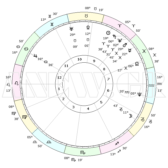 | | ΘΕΣΕΙΣ ΠΛΑΝΗΤΩΝ ΑΣΤΡΟΛΟΓΙΚΟΥ ΧΑΡΤΗ ΤΗΣ ΣΤΙΓΜΗΣ ΑΥΤΗΣ | | | | Πλανήτης | Ζώδιο | Μοίρες | Δεκαήμ. | Σε οίκο | Απόκλιση | | Ακμές των οίκων | | Ηλιος | Κριός | 19°34' | Δεύτερο | 10 | 07 N 39 | | 1ος | 26°13' | Καρκίνος | | Σελήνη | Αιγόκερως | 10°53' | Δεύτερο | 6 | 27 S 19 | | 2ος | 17°01' | Λέων | | Ερμής | Ιχθείς | 22°29' | Τρίτο | 9 | 05 S 05 | | 3ος | 11°34' | Παρθένος | | Αφροδίτη | Ταύρος | 11°59' | Δεύτερο | 10 | 15 N 21 | | 4ος | 12°06' | Ζυγός | | Αρης | Ιχθείς | 29°42' | Τρίτο | 9 | 01 S 03 | | 5ος | 18°12' | Σκορπιός | | Δίας | Καρκίνος | 16°26' | Δεύτερο | 12 | 22 N 48 | | 6ος | 24°32' | Τοξότης | | Κρόνος | Κριός | 06°42' | Πρώτο | 9 | 00 N 42 | | 7ος | 26°13' | Αιγόκερως | | Ουρανός | Ταύρος | 29°09' | Τρίτο | 11 | 19 N 48 | | 8ος | 17°01' | Υδροχόος | | Ποσειδώνας | Κριός | 02°31' | Πρώτο | 9 | 00 S 12 | | 9ος | 11°34' | Ιχθείς | | Πλούτωνας | Υδροχόος | 05°20' | Πρώτο | 7 | 22 S 47 | | 10ος | 12°06' | Κριός | | Β. Δεσμός | Ιχθείς | 06°57' | Πρώτο | 8 | 08 S 57 | | 11ος | 18°12' | Ταύρος | | Ωροσκόπος | Καρκίνος | 26°13' | Τρίτο | | | 12ος | 24°32' | Δίδυμοι | | Μεσουράνημα | Κριός | 12°06' | Δεύτερο | | | |