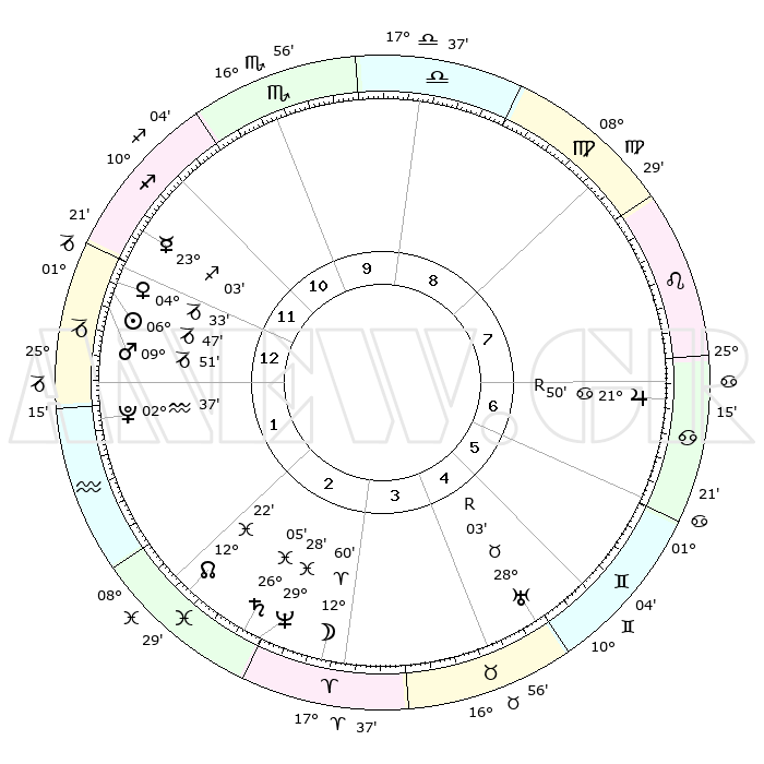 | | ΘΕΣΕΙΣ ΠΛΑΝΗΤΩΝ ΑΣΤΡΟΛΟΓΙΚΟΥ ΧΑΡΤΗ ΤΗΣ ΣΤΙΓΜΗΣ ΑΥΤΗΣ | | | | Πλανήτης | Ζώδιο | Μοίρες | Δεκαήμ. | Σε οίκο | Απόκλιση | | Ακμές των οίκων | | Ηλιος | Αιγόκερως | 06°42' | Πρώτο | 1 | 23 S 16 | | 1ος | 27°11' | Τοξότης | | Σελήνη | Κριός | 11°56' | Δεύτερο | 3 | 07 N 06 | | 2ος | 03°38' | Υδροχόος | | Ερμής | Τοξότης | 22°56' | Τρίτο | 12 | 23 S 23 | | 3ος | 13°24' | Ιχθείς | | Αφροδίτη | Αιγόκερως | 04°27' | Πρώτο | 1 | 23 S 43 | | 4ος | 17°46' | Κριός | | Αρης | Αιγόκερως | 09°48' | Πρώτο | 1 | 23 S 56 | | 5ος | 14°33' | Ταύρος | | Δίας | Καρκίνος | 21°50'R | Τρίτο | 7 | 21 N 53 | | 6ος | 06°32' | Δίδυμοι | | Κρόνος | Ιχθείς | 26°05' | Τρίτο | 3 | 03 S 39 | | 7ος | 27°11' | Δίδυμοι | | Ουρανός | Ταύρος | 28°03'R | Τρίτο | 5 | 19 N 32 | | 8ος | 03°38' | Λέων | | Ποσειδώνας | Ιχθείς | 29°28' | Τρίτο | 3 | 01 S 26 | | 9ος | 13°24' | Παρθένος | | Πλούτωνας | Υδροχόος | 02°37' | Πρώτο | 1 | 23 S 15 | | 10ος | 17°46' | Ζυγός | | Β. Δεσμός | Ιχθείς | 12°22' | Δεύτερο | 2 | 06 S 55 | | 11ος | 14°33' | Σκορπιός | | Ωροσκόπος | Τοξότης | 27°11' | Τρίτο | | | 12ος | 06°32' | Τοξότης | | Μεσουράνημα | Ζυγός | 17°46' | Δεύτερο | | | |