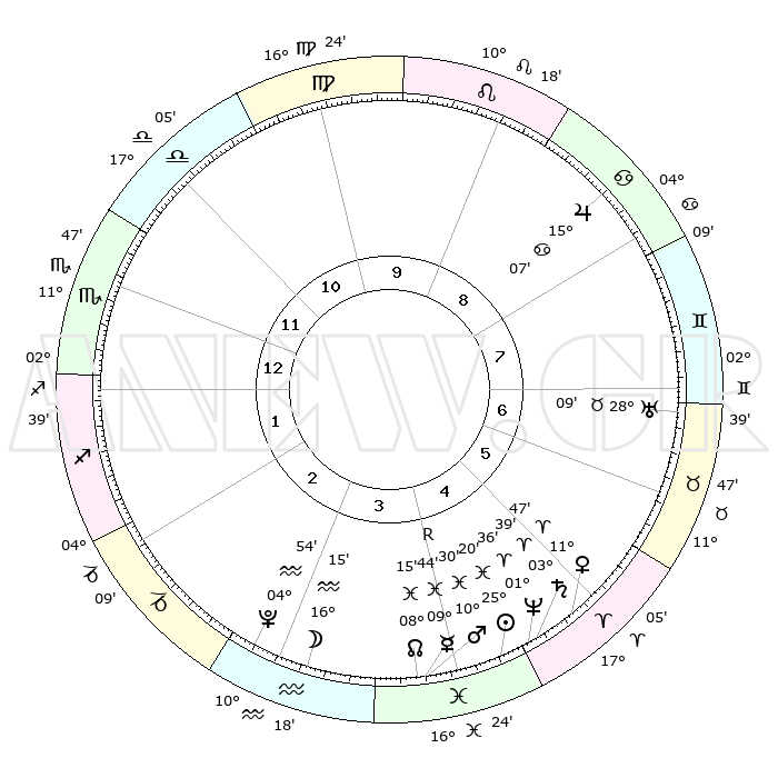 | | ΘΕΣΕΙΣ ΠΛΑΝΗΤΩΝ ΑΣΤΡΟΛΟΓΙΚΟΥ ΧΑΡΤΗ ΤΗΣ ΣΤΙΓΜΗΣ ΑΥΤΗΣ | | | | Πλανήτης | Ζώδιο | Μοίρες | Δεκαήμ. | Σε οίκο | Απόκλιση | | Ακμές των οίκων | | Ηλιος | Ιχθείς | 25°16' | Τρίτο | 4 | 01 S 53 | | 1ος | 15°41' | Σκορπιός | | Σελήνη | Υδροχόος | 15°30' | Δεύτερο | 3 | 18 S 12 | | 2ος | 15°13' | Τοξότης | | Ερμής | Ιχθείς | 09°46'R | Πρώτο | 4 | 05 S 52 | | 3ος | 18°47' | Αιγόκερως | | Αφροδίτη | Κριός | 11°42' | Δεύτερο | 5 | 03 N 41 | | 4ος | 24°07' | Υδροχόος | | Αρης | Ιχθείς | 10°27' | Δεύτερο | 4 | 08 S 39 | | 5ος | 26°29' | Ιχθείς | | Δίας | Καρκίνος | 15°07' | Δεύτερο | 8 | 22 N 56 | | 6ος | 23°27' | Κριός | | Κρόνος | Κριός | 03°39' | Πρώτο | 5 | 00 S 30 | | 7ος | 15°41' | Ταύρος | | Ουρανός | Ταύρος | 28°08' | Τρίτο | 7 | 19 N 34 | | 8ος | 15°13' | Δίδυμοι | | Ποσειδώνας | Κριός | 01°36' | Πρώτο | 5 | 00 S 34 | | 9ος | 18°47' | Καρκίνος | | Πλούτωνας | Υδροχόος | 04°54' | Πρώτο | 3 | 22 S 49 | | 10ος | 24°07' | Λέων | | Β. Δεσμός | Ιχθείς | 08°15' | Πρώτο | 4 | 08 S 28 | | 11ος | 26°29' | Παρθένος | | Ωροσκόπος | Σκορπιός | 15°41' | Δεύτερο | | | 12ος | 23°27' | Ζυγός | | Μεσουράνημα | Λέων | 24°07' | Τρίτο | | | |