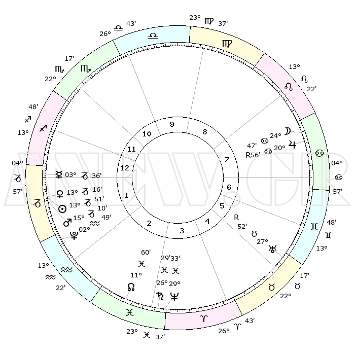 | | ΘΕΣΕΙΣ ΠΛΑΝΗΤΩΝ ΑΣΤΡΟΛΟΓΙΚΟΥ ΧΑΡΤΗ ΤΗΣ ΣΤΙΓΜΗΣ ΑΥΤΗΣ | | | | Πλανήτης | Ζώδιο | Μοίρες | Δεκαήμ. | Σε οίκο | Απόκλιση | | Ακμές των οίκων | | Ηλιος | Αιγόκερως | 13°01' | Δεύτερο | 10 | 22 S 48 | | 1ος | 03°15' | Κριός | | Σελήνη | Καρκίνος | 12°48' | Δεύτερο | 4 | 27 N 06 | | 2ος | 12°45' | Ταύρος | | Ερμής | Αιγόκερως | 02°21' | Πρώτο | 10 | 24 S 14 | | 3ος | 09°39' | Δίδυμοι | | Αφροδίτη | Αιγόκερως | 12°15' | Δεύτερο | 10 | 23 S 28 | | 4ος | 01°50' | Καρκίνος | | Αρης | Αιγόκερως | 14°33' | Δεύτερο | 10 | 23 S 32 | | 5ος | 24°17' | Καρκίνος | | Δίας | Καρκίνος | 21°02'R | Τρίτο | 4 | 22 N 02 | | 6ος | 22°12' | Λέων | | Κρόνος | Ιχθείς | 26°26' | Τρίτο | 12 | 03 S 29 | | 7ος | 03°15' | Ζυγός | | Ουρανός | Ταύρος | 27°53'R | Τρίτο | 2 | 19 N 29 | | 8ος | 12°45' | Σκορπιός | | Ποσειδώνας | Ιχθείς | 29°32' | Τρίτο | 12 | 01 S 24 | | 9ος | 09°39' | Τοξότης | | Πλούτωνας | Υδροχόος | 02°48' | Πρώτο | 11 | 23 S 12 | | 10ος | 01°50' | Αιγόκερως | | Β. Δεσμός | Ιχθείς | 12°03' | Δεύτερο | 12 | 07 S 03 | | 11ος | 24°17' | Αιγόκερως | | Ωροσκόπος | Κριός | 03°15' | Πρώτο | | | 12ος | 22°12' | Υδροχόος | | Μεσουράνημα | Αιγόκερως | 01°50' | Πρώτο | | | |