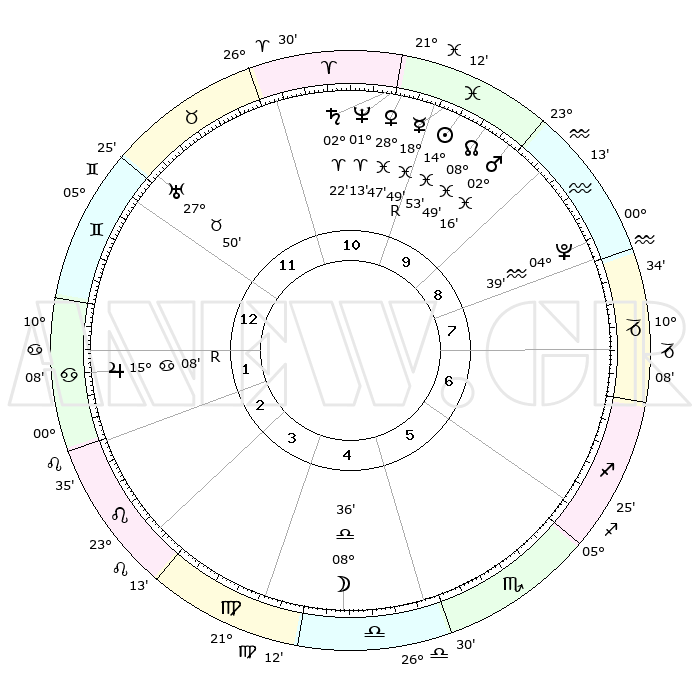 | | ΘΕΣΕΙΣ ΠΛΑΝΗΤΩΝ ΑΣΤΡΟΛΟΓΙΚΟΥ ΧΑΡΤΗ ΤΗΣ ΣΤΙΓΜΗΣ ΑΥΤΗΣ | | | | Πλανήτης | Ζώδιο | Μοίρες | Δεκαήμ. | Σε οίκο | Απόκλιση | | Ακμές των οίκων | | Ηλιος | Ιχθείς | 14°49' | Δεύτερο | 10 | 05 S 59 | | 1ος | 16°05' | Δίδυμοι | | Σελήνη | Ζυγός | 07°41' | Πρώτο | 5 | 05 S 23 | | 2ος | 08°12' | Καρκίνος | | Ερμής | Ιχθείς | 18°53'R | Δεύτερο | 10 | 01 S 00 | | 3ος | 29°27' | Καρκίνος | | Αφροδίτη | Ιχθείς | 28°41' | Τρίτο | 11 | 01 S 42 | | 4ος | 23°47' | Λέων | | Αρης | Ιχθείς | 02°13' | Πρώτο | 10 | 11 S 42 | | 5ος | 25°13' | Παρθένος | | Δίας | Καρκίνος | 15°08'R | Δεύτερο | 2 | 22 N 55 | | 6ος | 05°23' | Σκορπιός | | Κρόνος | Κριός | 02°22' | Πρώτο | 11 | 01 S 01 | | 7ος | 16°05' | Τοξότης | | Ουρανός | Ταύρος | 27°50' | Τρίτο | 12 | 19 N 30 | | 8ος | 08°12' | Αιγόκερως | | Ποσειδώνας | Κριός | 01°12' | Πρώτο | 11 | 00 S 43 | | 9ος | 29°27' | Αιγόκερως | | Πλούτωνας | Υδροχόος | 04°39' | Πρώτο | 9 | 22 S 51 | | 10ος | 23°47' | Υδροχόος | | Β. Δεσμός | Ιχθείς | 08°49' | Πρώτο | 10 | 08 S 16 | | 11ος | 25°13' | Ιχθείς | | Ωροσκόπος | Δίδυμοι | 16°05' | Δεύτερο | | | 12ος | 05°23' | Ταύρος | | Μεσουράνημα | Υδροχόος | 23°47' | Τρίτο | | | |