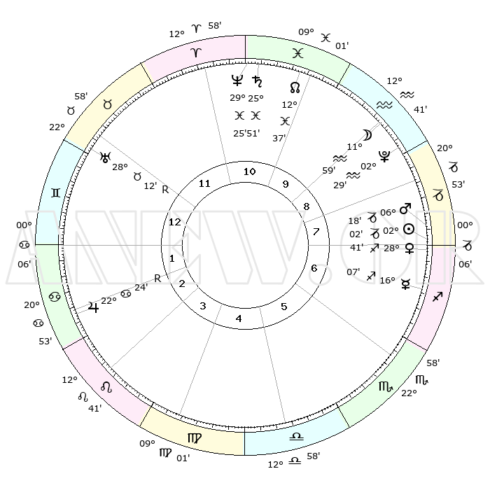 | | ΘΕΣΕΙΣ ΠΛΑΝΗΤΩΝ ΑΣΤΡΟΛΟΓΙΚΟΥ ΧΑΡΤΗ ΤΗΣ ΣΤΙΓΜΗΣ ΑΥΤΗΣ | | | | Πλανήτης | Ζώδιο | Μοίρες | Δεκαήμ. | Σε οίκο | Απόκλιση | | Ακμές των οίκων | | Ηλιος | Αιγόκερως | 01°57' | Πρώτο | 8 | 23 S 25 | | 1ος | 28°39' | Ταύρος | | Σελήνη | Υδροχόος | 10°56' | Δεύτερο | 10 | 19 S 57 | | 2ος | 23°44' | Δίδυμοι | | Ερμής | Τοξότης | 15°59' | Δεύτερο | 7 | 22 S 15 | | 3ος | 15°12' | Καρκίνος | | Αφροδίτη | Τοξότης | 28°34' | Τρίτο | 8 | 23 S 36 | | 4ος | 07°52' | Λέων | | Αρης | Αιγόκερως | 06°14' | Πρώτο | 8 | 24 S 07 | | 5ος | 06°06' | Παρθένος | | Δίας | Καρκίνος | 22°25'R | Τρίτο | 3 | 21 N 47 | | 6ος | 14°20' | Ζυγός | | Κρόνος | Ιχθείς | 25°51' | Τρίτο | 11 | 03 S 45 | | 7ος | 28°39' | Σκορπιός | | Ουρανός | Ταύρος | 28°12'R | Τρίτο | 12 | 19 N 33 | | 8ος | 23°44' | Τοξότης | | Ποσειδώνας | Ιχθείς | 29°25' | Τρίτο | 11 | 01 S 27 | | 9ος | 15°12' | Αιγόκερως | | Πλούτωνας | Υδροχόος | 02°29' | Πρώτο | 9 | 23 S 16 | | 10ος | 07°52' | Υδροχόος | | Β. Δεσμός | Ιχθείς | 12°37' | Δεύτερο | 11 | 06 S 49 | | 11ος | 06°06' | Ιχθείς | | Ωροσκόπος | Ταύρος | 28°39' | Τρίτο | | | 12ος | 14°20' | Κριός | | Μεσουράνημα | Υδροχόος | 07°52' | Πρώτο | | | |